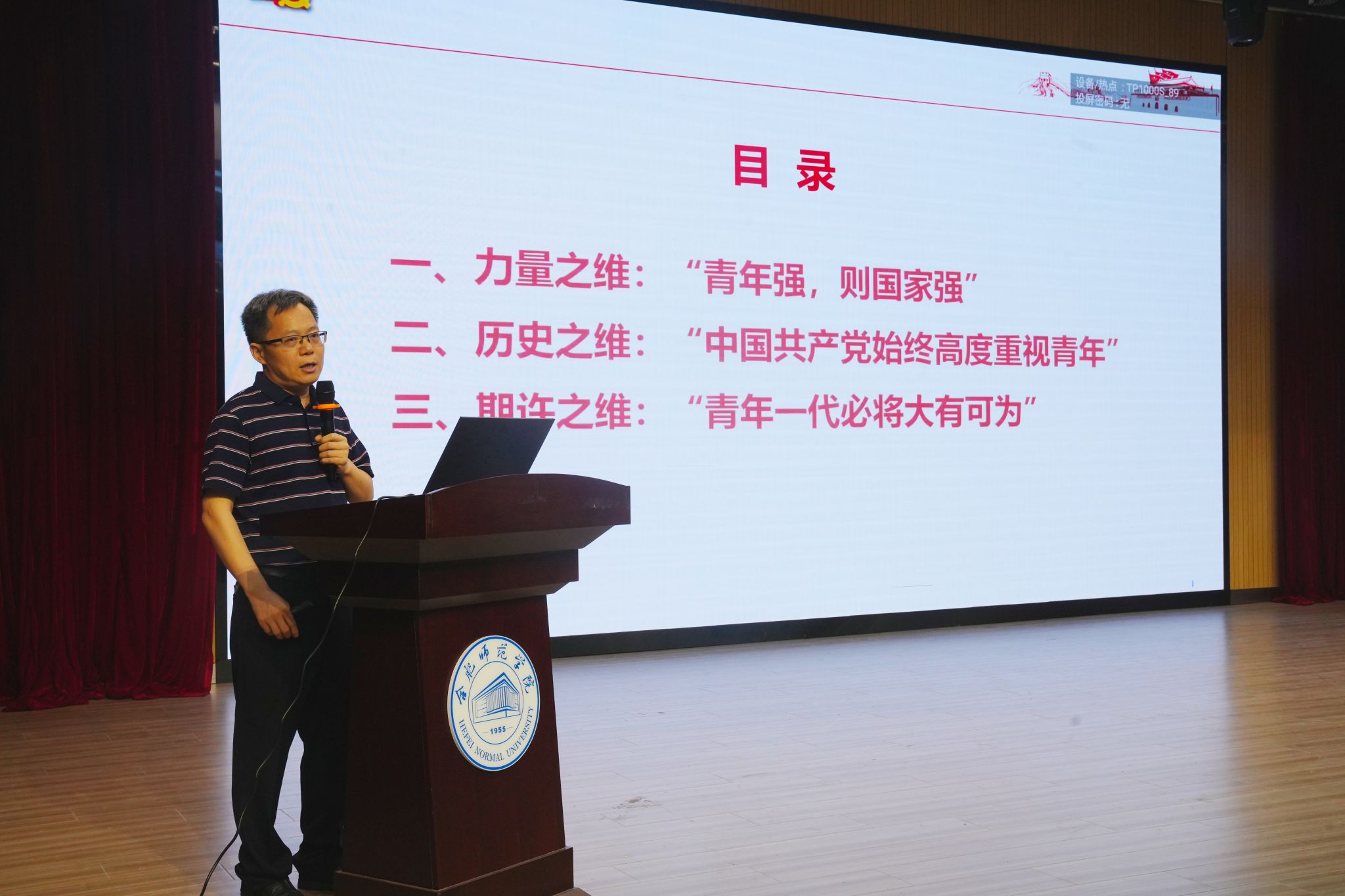 马克思主义学院朱玉利教授作题为《实现中华民族伟大复兴需要依靠青年》的理论导学,从力量之维、历史之维、期许之维等三方面解读了习近平总书记五四重要寄语精神,希望青年学生增强做中国人的志气、骨气和底气,不负时代、不负韶华,不负党和人民的殷切期望。