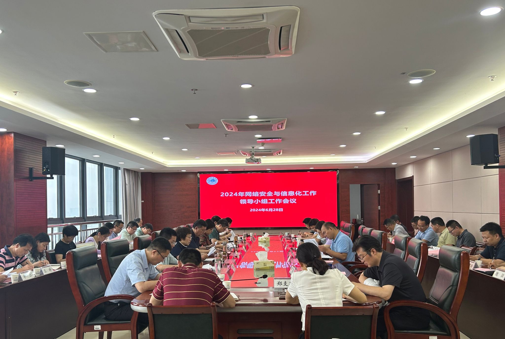 本网讯 6月28日下午,学院在锦绣校区行知楼第二会议室召开网络安全与信息化工作领导小组工作会议,院党委书记徐成钢,党委副书记、院长方东玲,党委副书记梁立昌,副院长华银峰,学院网络安全与信息化领导小组成员单位,各部门主要负责人,二级学院党委(党总支)主要负责人参加会议。会议由徐成钢主持。