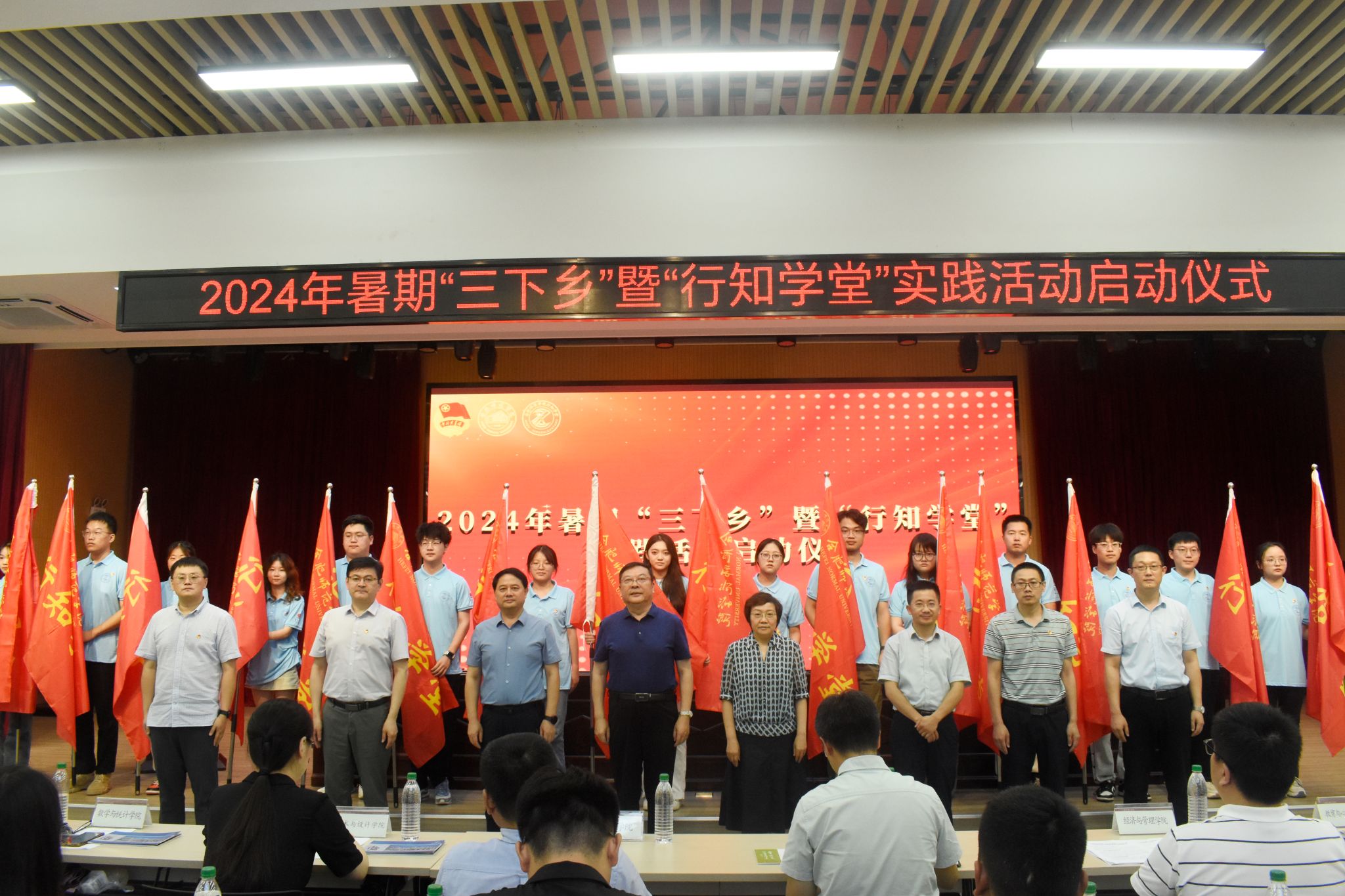 活动现场,与会领导向“行知学堂”优秀小先生代表颁赠了《习近平与大学生朋友们》第一卷、第二卷,向各二级学院“行知学堂”实践活动团队代表授旗并合影留念。为强化安全意识和责任落实,启动仪式后,院团委面向实践活动指导教师、辅导员和“小先生”代表开展了安全教育、教学规范专题培训,专门印发了《2024年暑期“三下乡”暨“行知学堂”实践活动安全温馨提示》。(院团委:田家乐、焦心怡)