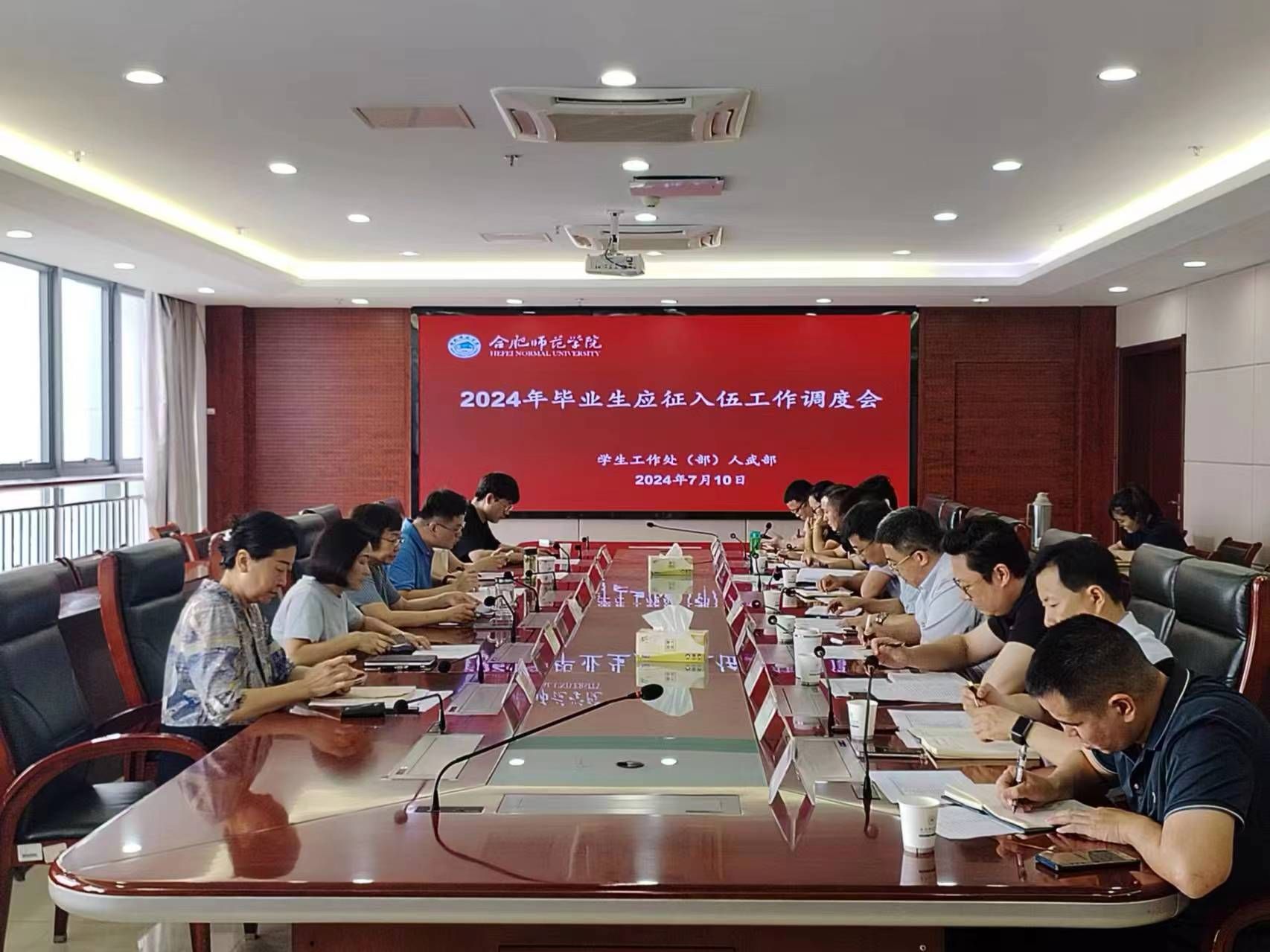 本网讯 7月10日上午,学院在行知楼召开2024年毕业生应征入伍工作调度会,院党委副书记梁立昌主持会议并讲话。学生工作处、人武部主要负责人,各二级学院党委(党总支)副书记参加会议。