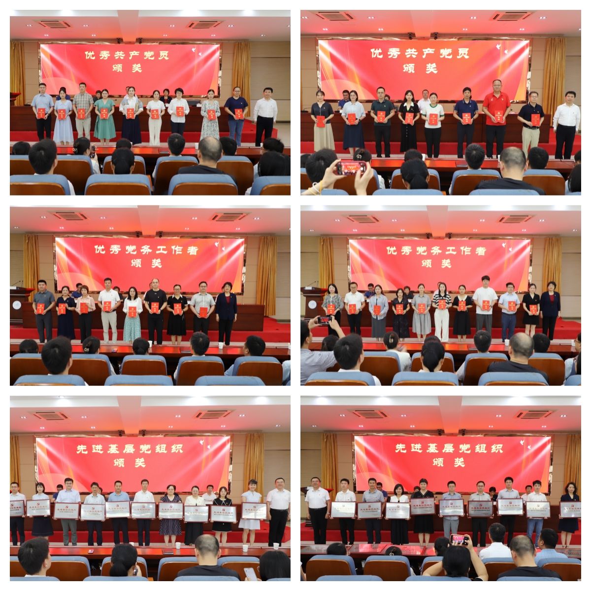 党委副书记梁立昌宣读《关于表彰优秀共产党员、优秀党务工作者、先进基层党组织的决定》,院党委班子成员为获得先进集体和优秀个人代表颁发奖牌和荣誉证书。