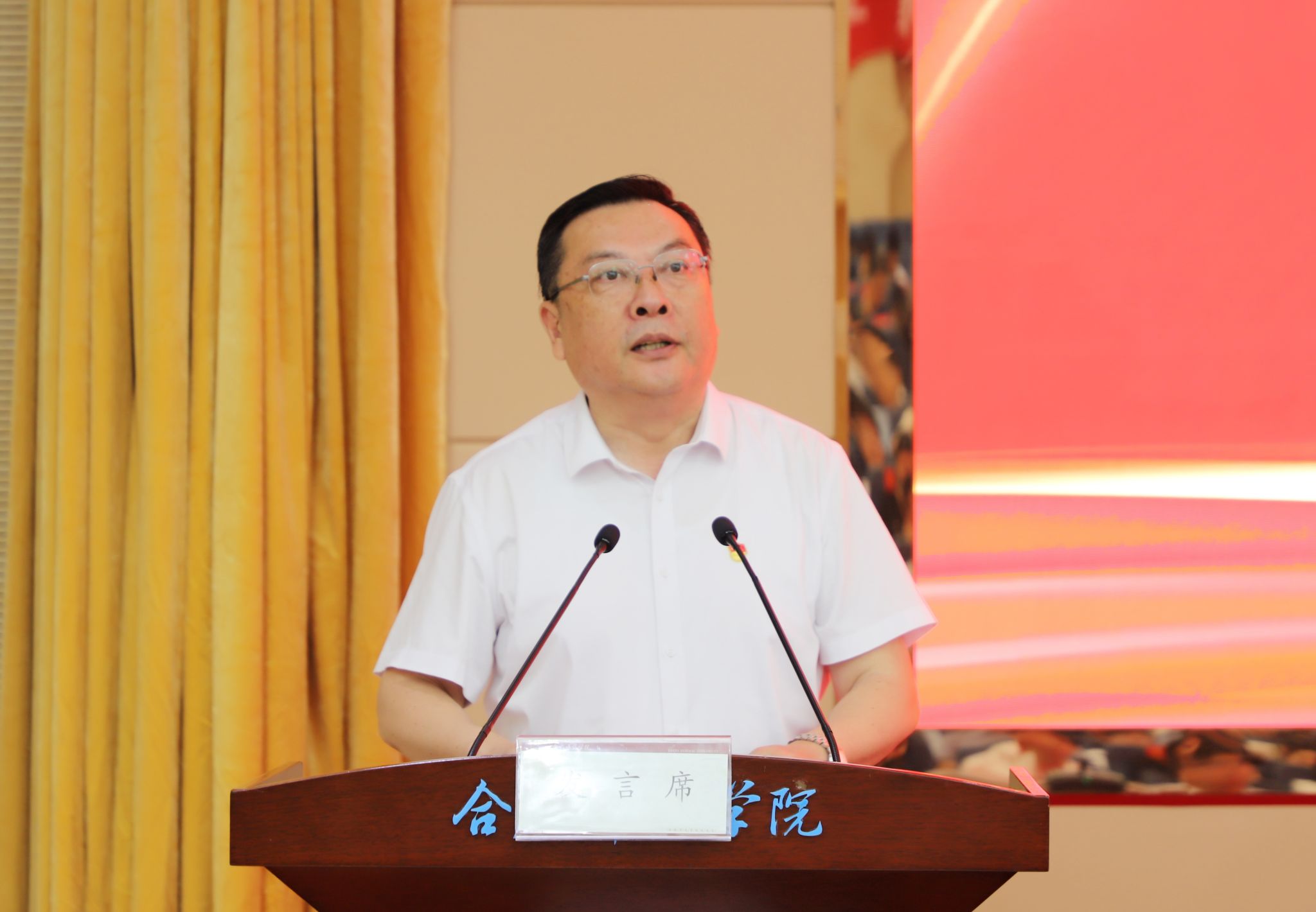 徐成钢发表讲话,代表学院党委向全院共产党员致以节日问候,向受表彰的先进集体和优秀个人表示热烈祝贺。徐成钢指出,历史昭示未来,奋斗铸就辉煌,一百多年来,中国共产党始终把为中国人民谋幸福、为中华民族谋复兴作为自己的初心使命,在伟大建党精神的感召下,创造了四个“伟大成就”,书写了中华民族几千年历史上最恢宏的史诗。在党的领导下,合肥师范学院已走过了69年的光荣历程。他强调,学院健康稳步发展,靠的是学院党委的坚强领导,靠是各基层党组织的示范引领,靠的是全体党员的无私奉献,靠的是全院师生员工的共同努力,全院各级党组织和共产党员为推动学院党的建设和事业发展作出了积极贡献。在学院改革发展进程中,涌现出一批基层党组织、党务工作者、共产党员及“四好”创建先进集体和个人,全体师生要向先进学习,学习他们爱党爱校、共建合师的奉献精神,学习他们奋发有为、攻坚克难的实干精神和勤于思考、敢于创新的进取精神。
