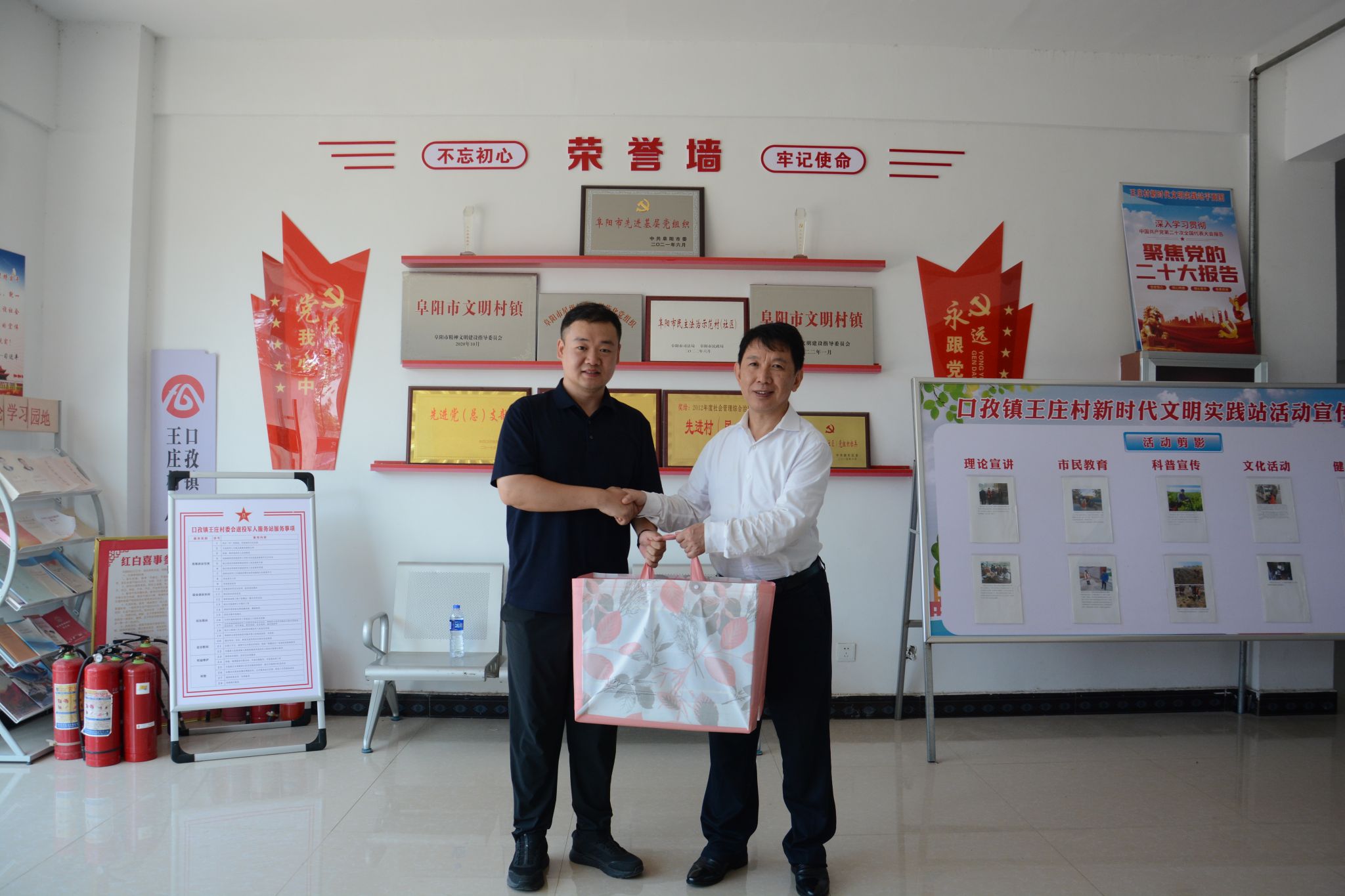 本网讯 7月21日,院党委书记徐成钢,党委委员、纪委书记、监察专员徐文林带领帮扶干部,顶烈日、冒酷暑,前往阜阳市颍东区口孜镇王庄村、洪阳村,看望慰问驻村干部和我院暑期“行知学堂”小先生,实地走访调研帮扶工作。
