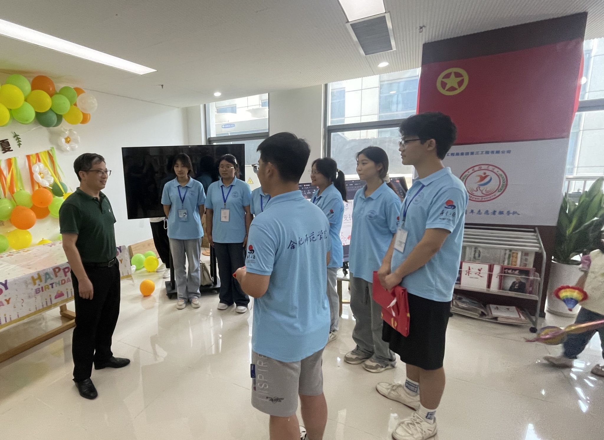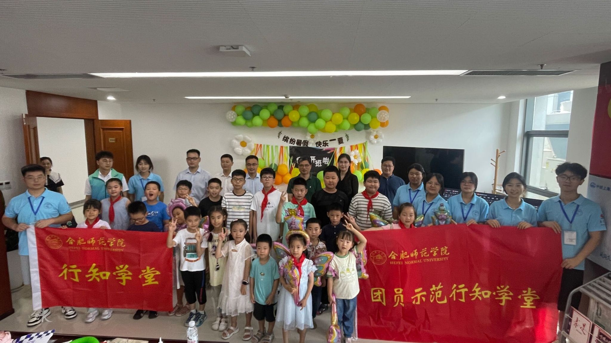 本网讯 7月19日下午,党委委员、副院长华银峰在校团委、美术与设计学院负责人陪同下,来到中铁上海局三公司看望合肥师范学院“小候鸟”行知学堂的小先生和小学员们,实地指导行知学堂暑期社会实践活动,并参加“小候鸟”行知学堂及企业爱心暑托班的开班仪式。省总工会、团省委、合肥团市委、包河团区委、中铁上海局三公司相关负责同志一同参加开班仪式。