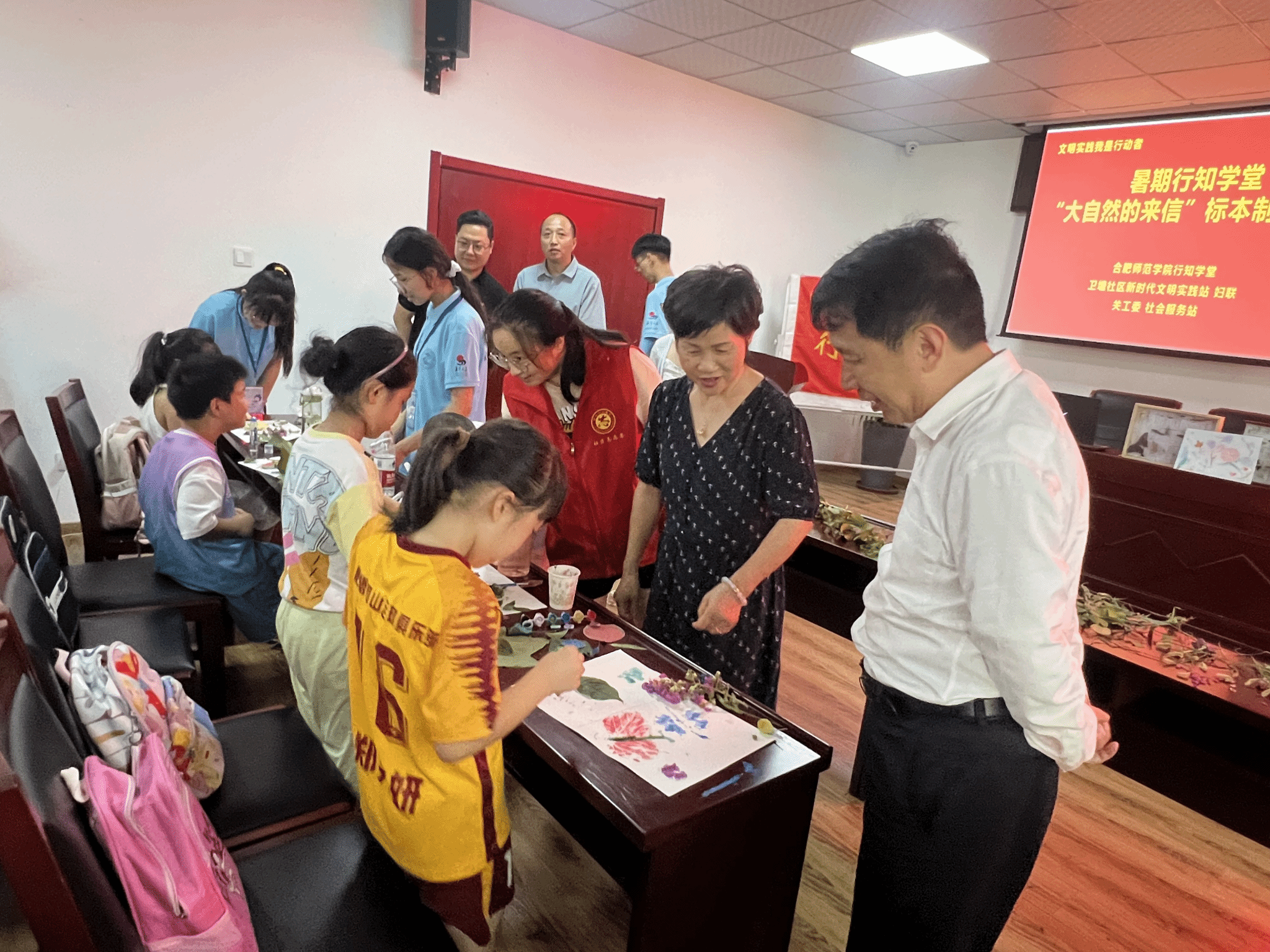 本网讯 7月22日,院党委委员、纪委书记、监察专员徐文林,在生物与食品工程学院党委书记郭桃芬、党委副书记马喆、副院长王伟、分团委书记、行知学堂指导老师黄洁陪同下,赴合肥市卫塘行知学堂看望慰问小先生和小学员们。
