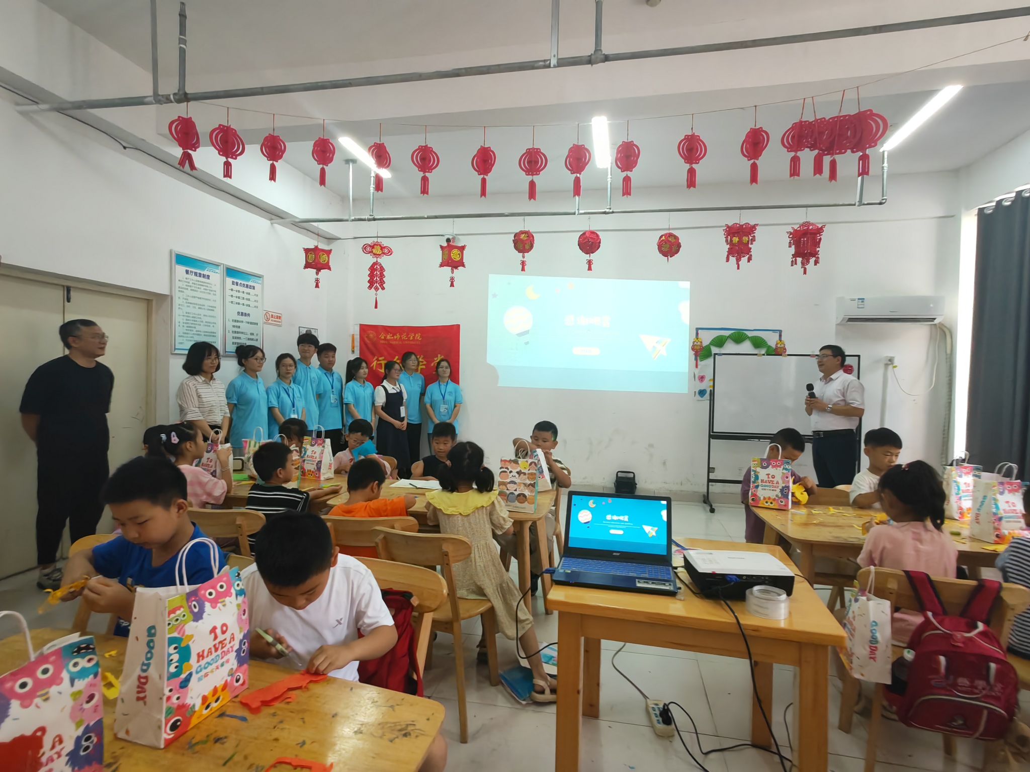 在听取了学堂负责人何海蓉对行知学堂开办意义、课程设置、活动安排、安全教育、开办以来的收获等情况汇报后,周端明一行先后观摩了小先生们指导小学员们进行的“行知剪艺”和“翩跹舞蹈”课程。