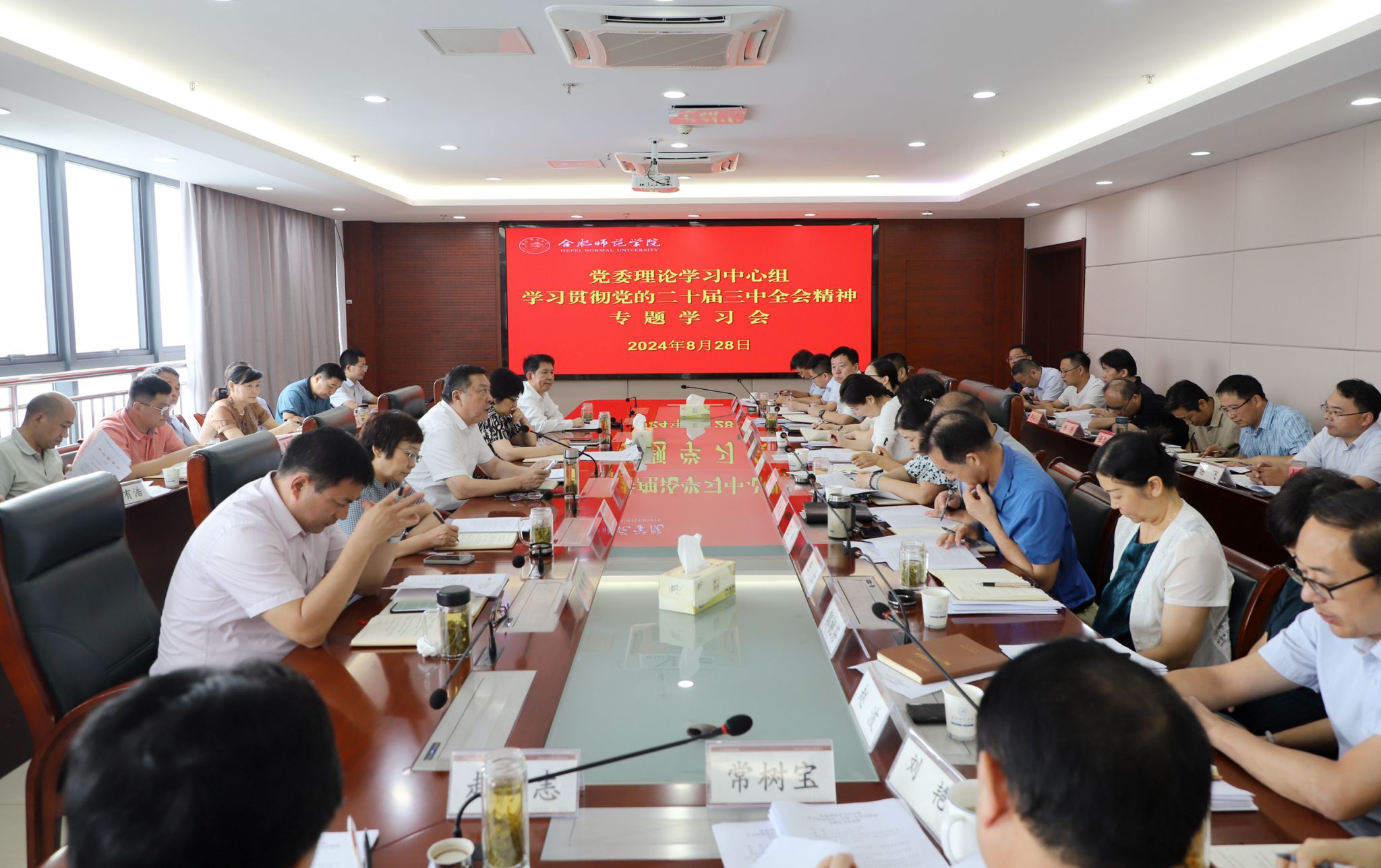 本网讯 8月28日上午,学院在行知楼2008会议室举行党委理论学习中心组学习贯彻党的二十届三中全会精神专题学习会。党委书记徐成钢主持会议并讲话。党委理论学习中心组成员,各院系级党委(党总支、直属党支部)书记,各学院院长,各部门主要负责人参加学习。