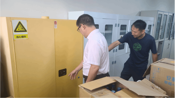周端明一行先后到生物与食品工程学院、化学与制药工程学院、物理与材料工程学院、计算机与人工智能学院、电子信息与集成电路学院等单位实验室,重点对实验室环境卫生、仪器操作、应急设施、耗材使用管理等重点环节进行实地检查,针对相关单位实验耗材室监控短缺、实验房间拥挤等困难现场制定解决方案,要求相关职能部门协同处理。