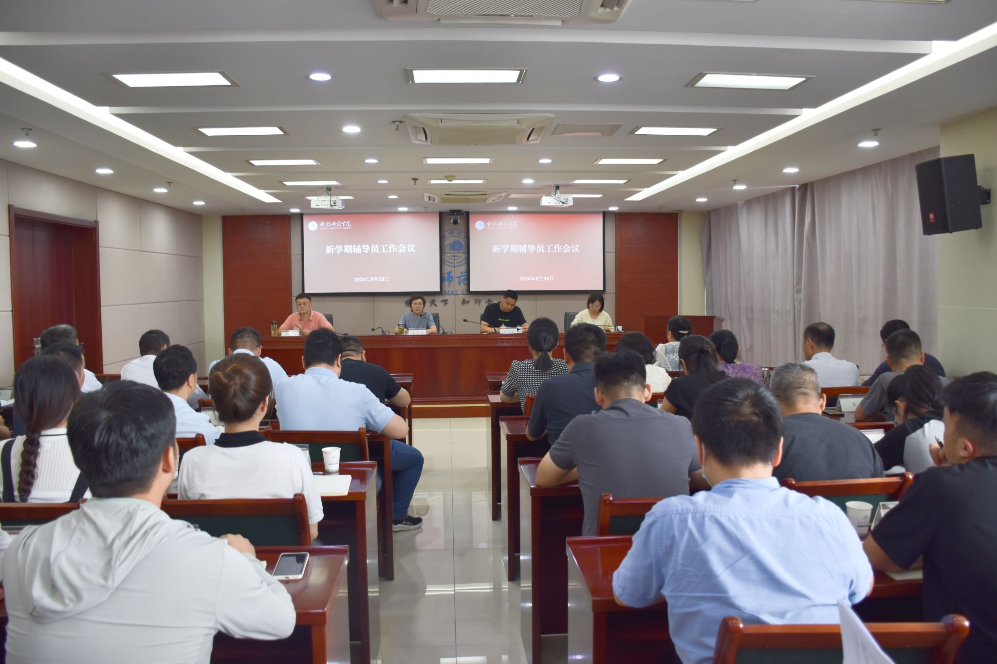 本网讯 8月28日下午,学院在行知楼召开新学期辅导员工作会议,院党委副书记梁立昌主持会议并讲话,学生工作处、保卫处负责人,各二级学院分管学生工作副书记、全体辅导员参加会议。