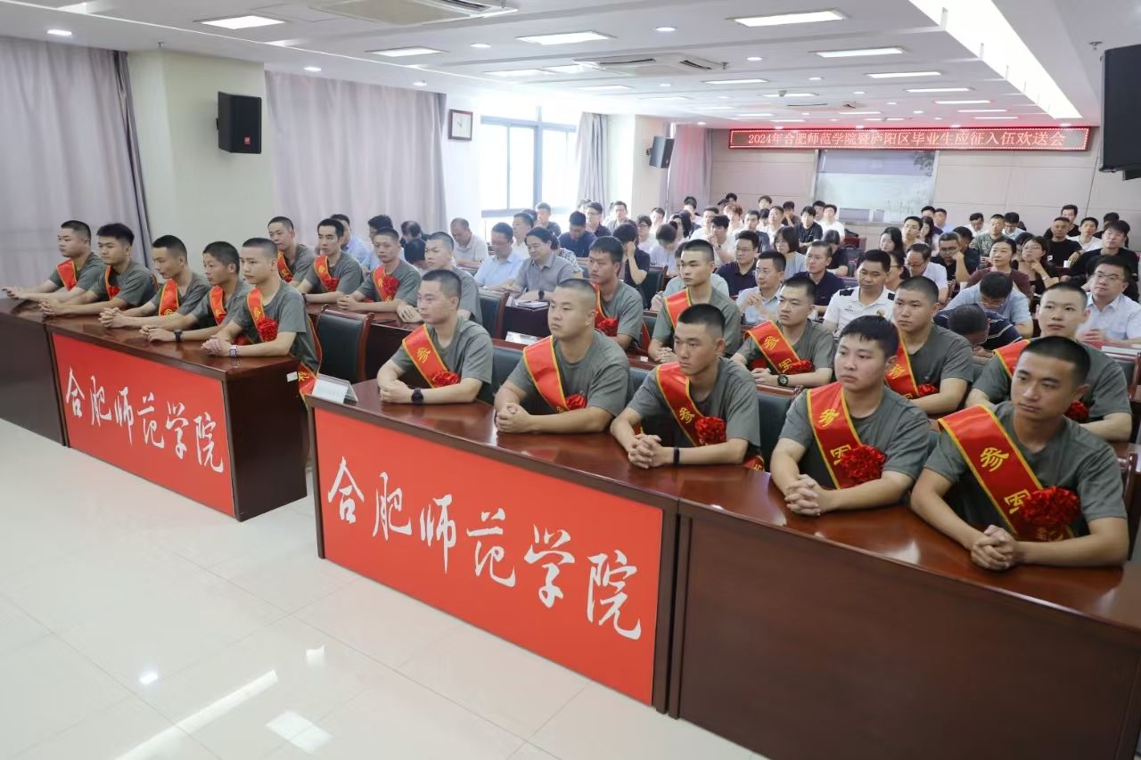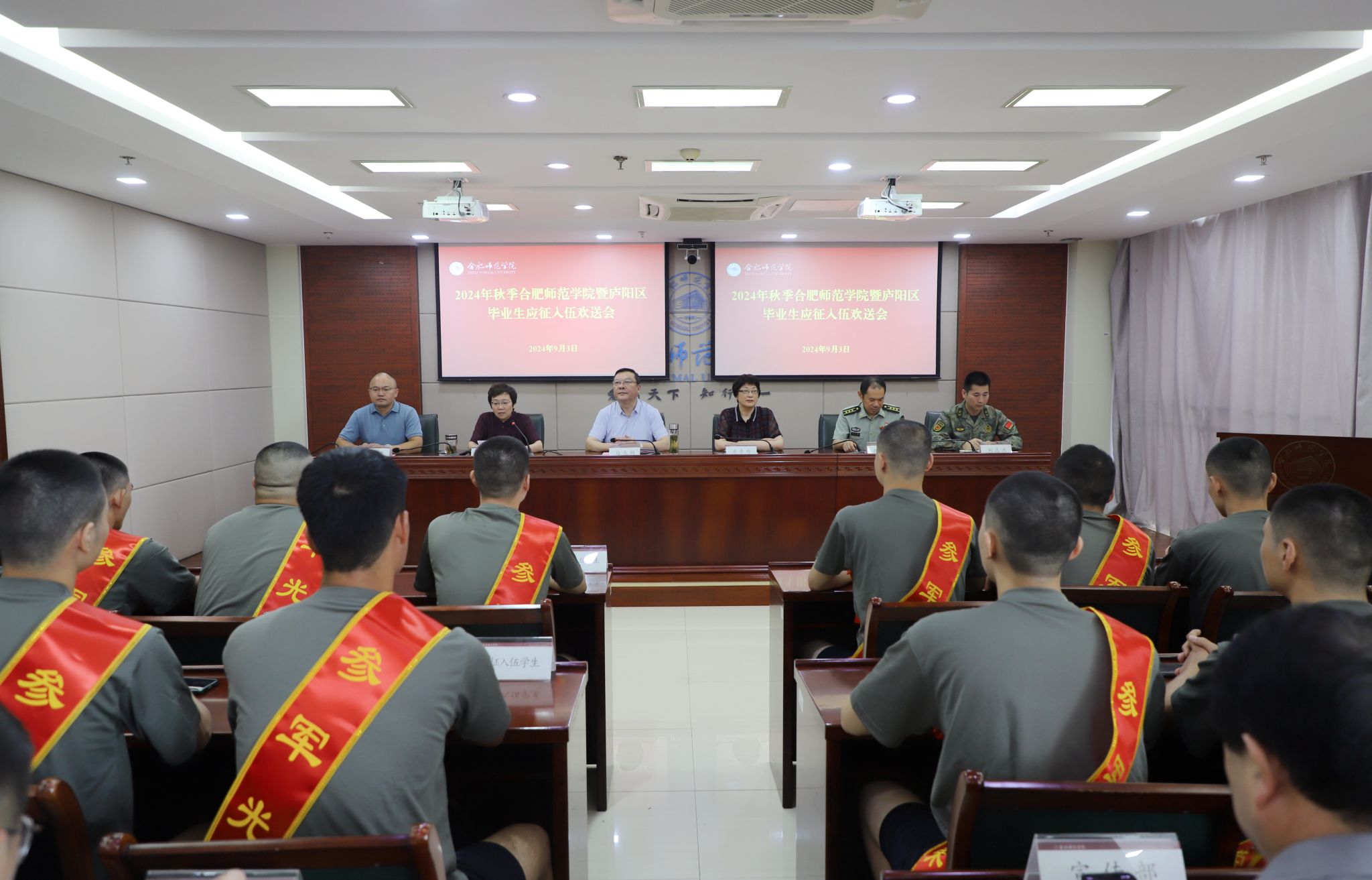 本网讯 9月3日上午,学院2024年秋季应征入伍毕业生欢送会在锦绣校区行知楼举行。院党委书记徐成钢,院党委副书记、院长方东玲,合肥市庐阳区人武部部长韩方景,庐阳区三孝口街道党工委副书记、主任周继黄,庐阳区三孝口街道人武部部长刘志杰,学院征兵工作领导组成员、2024届毕业班辅导员、2024年应征入伍毕业生及2021级学生代表参加会议。会议由院党委副书记梁立昌主持。