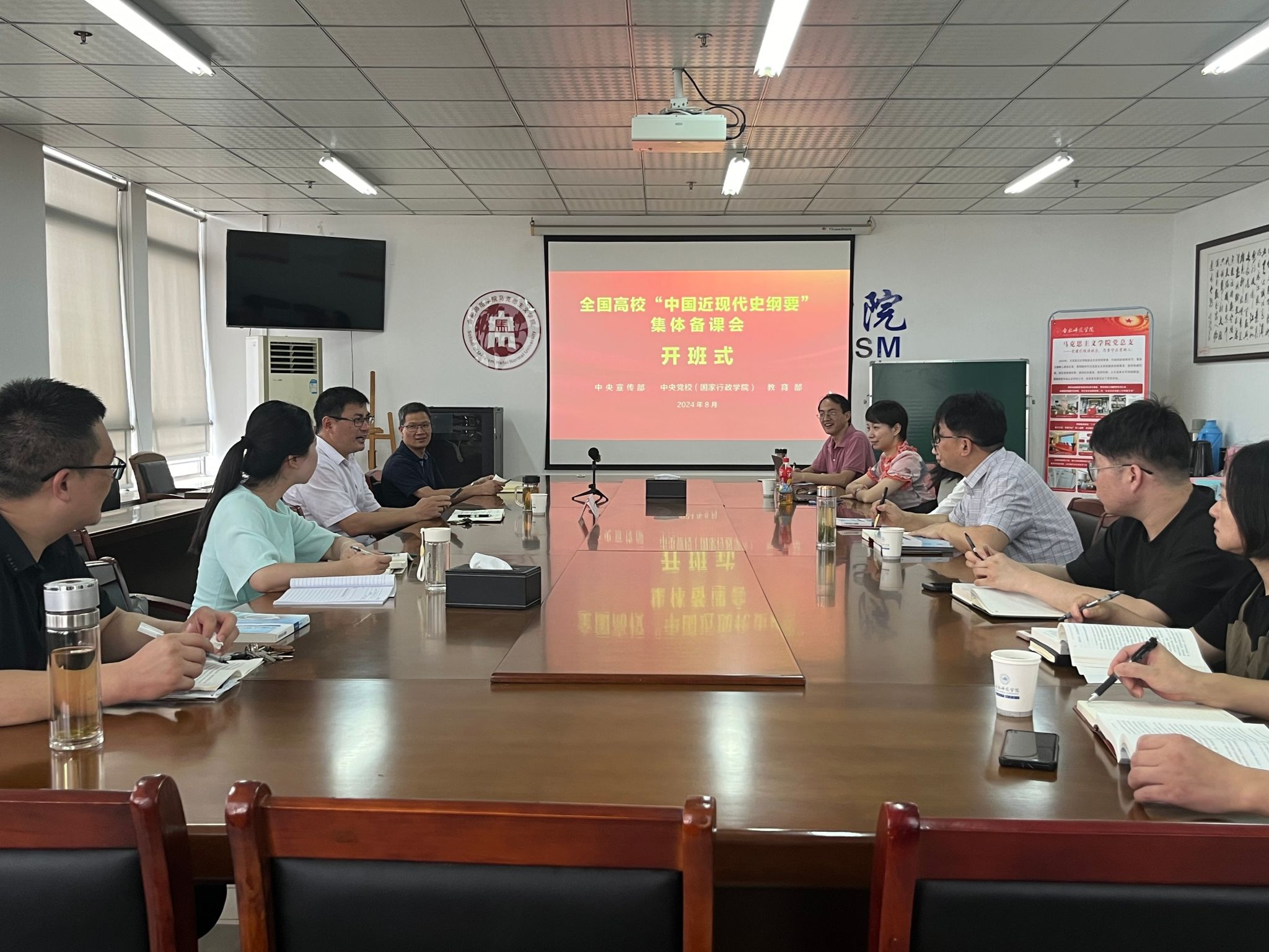 本网讯 8月26日至30日,为期5天的全国高校“中国近现代史纲要”集体备课会在中央党校举行,马克思主义学院“中国近现代史纲要”教研室全体老师以线上方式,在合肥师范学院分课堂全程参与备课会。党委委员、副院长周端明,马克思主义学院党政领导班子成员出席分课堂开班式。