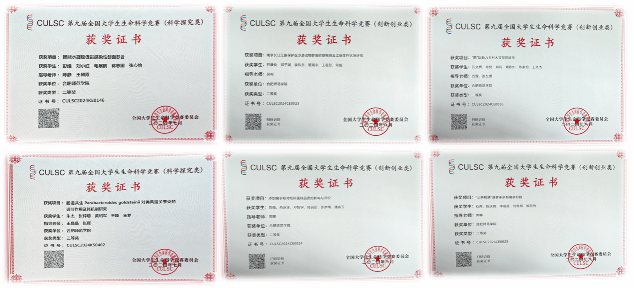 本届赛事中,科学探究类赛道共吸引来自全国629所高校16732支团队参加;该赛道中我院学子共有9个项目获得国家级奖励,其中,彭维、刘小红、毛展鹏、蒋志国、张心怡的项目《智能水凝胶促进感染性创面愈合》(指导老师:陈静、王朝霞)进入全国决赛,斩获全国二等奖,其他团队共斩获全国三等奖8项。创新创业类赛道共有来自全国535所高校的6676支团队参加;我院代表队在该赛道斩获国家级二等奖4项、三等奖2项,再次展现了我院学子的卓越实力和创新精神。