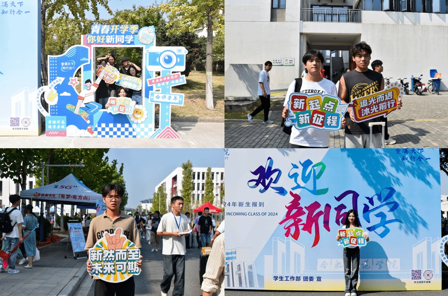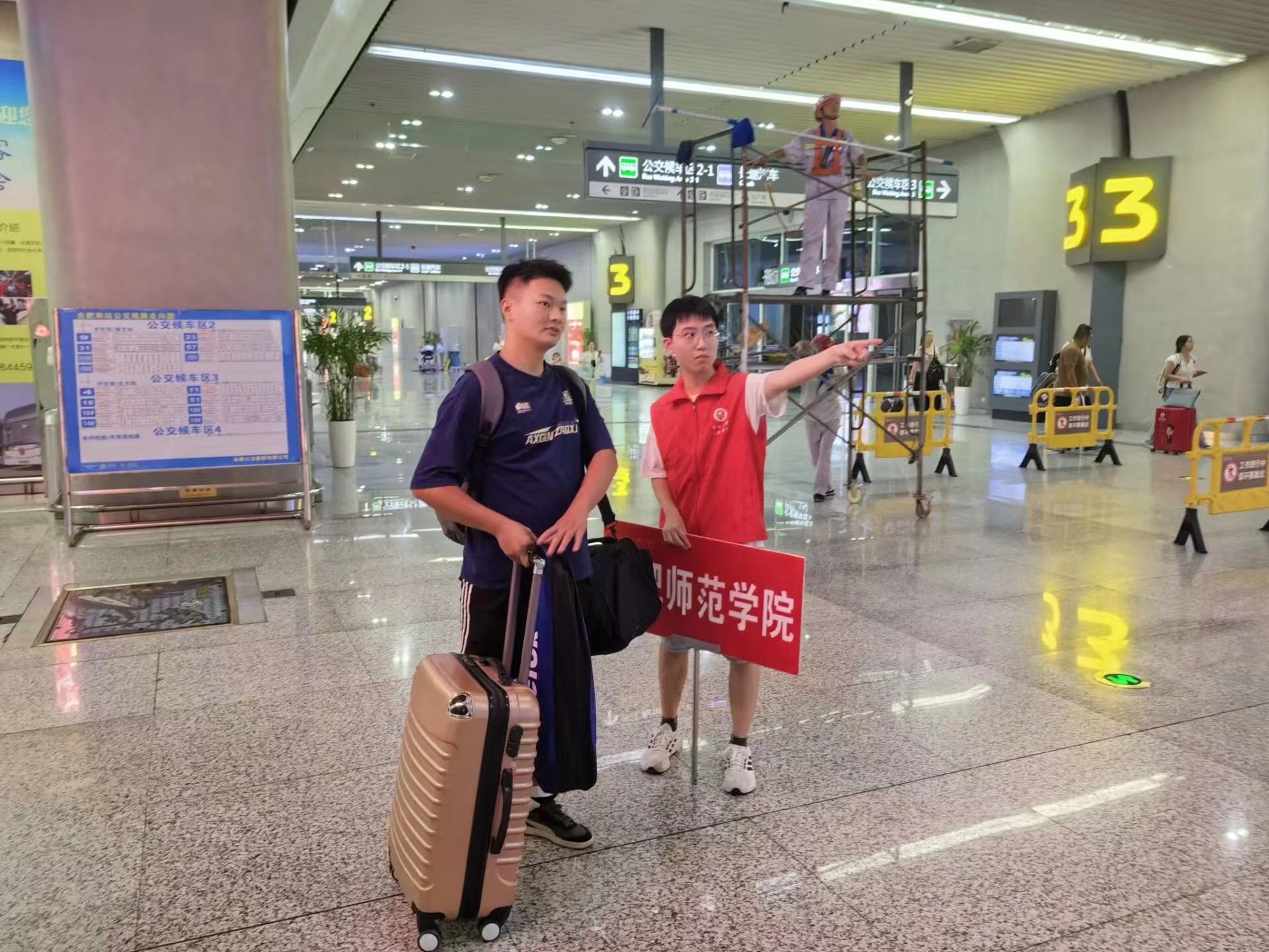 早上7点,去往合肥站、合肥南站的同学们就准时到达,志愿者们手举“合肥师范学院”的标识牌,欢迎来自全国各地的“新合师人”,这里既是迎新的第一站,也是志愿服务的“最先一公里”。