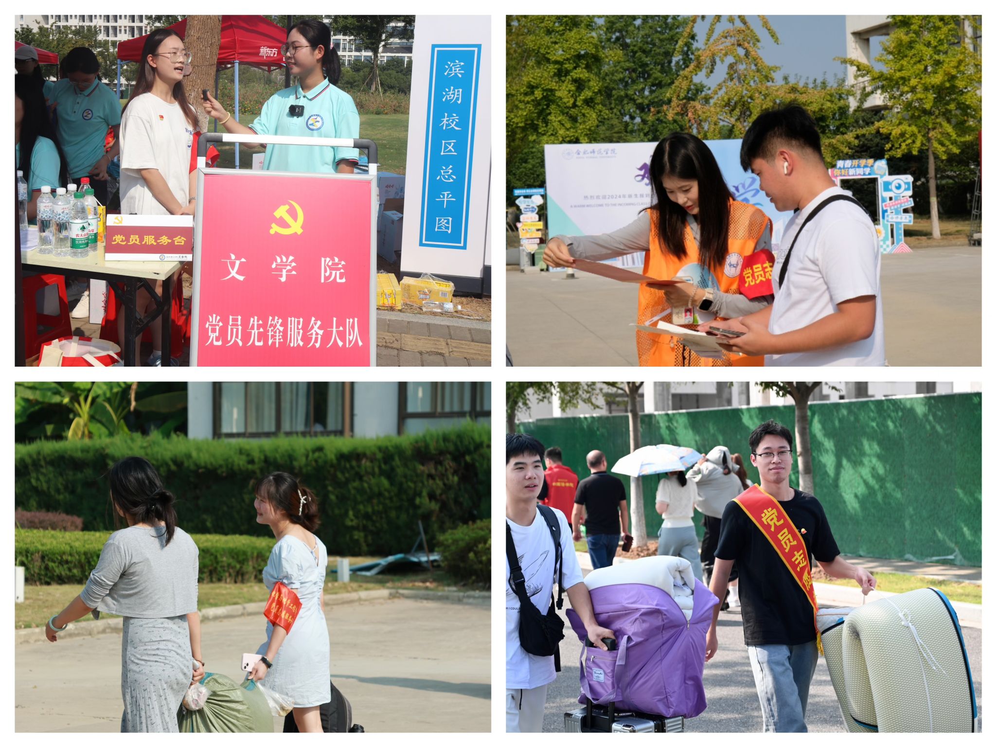 9月8日,是学院2024级新生报到日,各二级学院党组织用亮身份、挂标牌,设立党员爱心服务站、党员志愿先锋队、党员迎新服务队等多种形式,组织广大师生党员争当迎新志愿先锋,用“心”迎新、用“情”关怀、用“行”担当,让党旗高高飘扬在迎新工作一线。