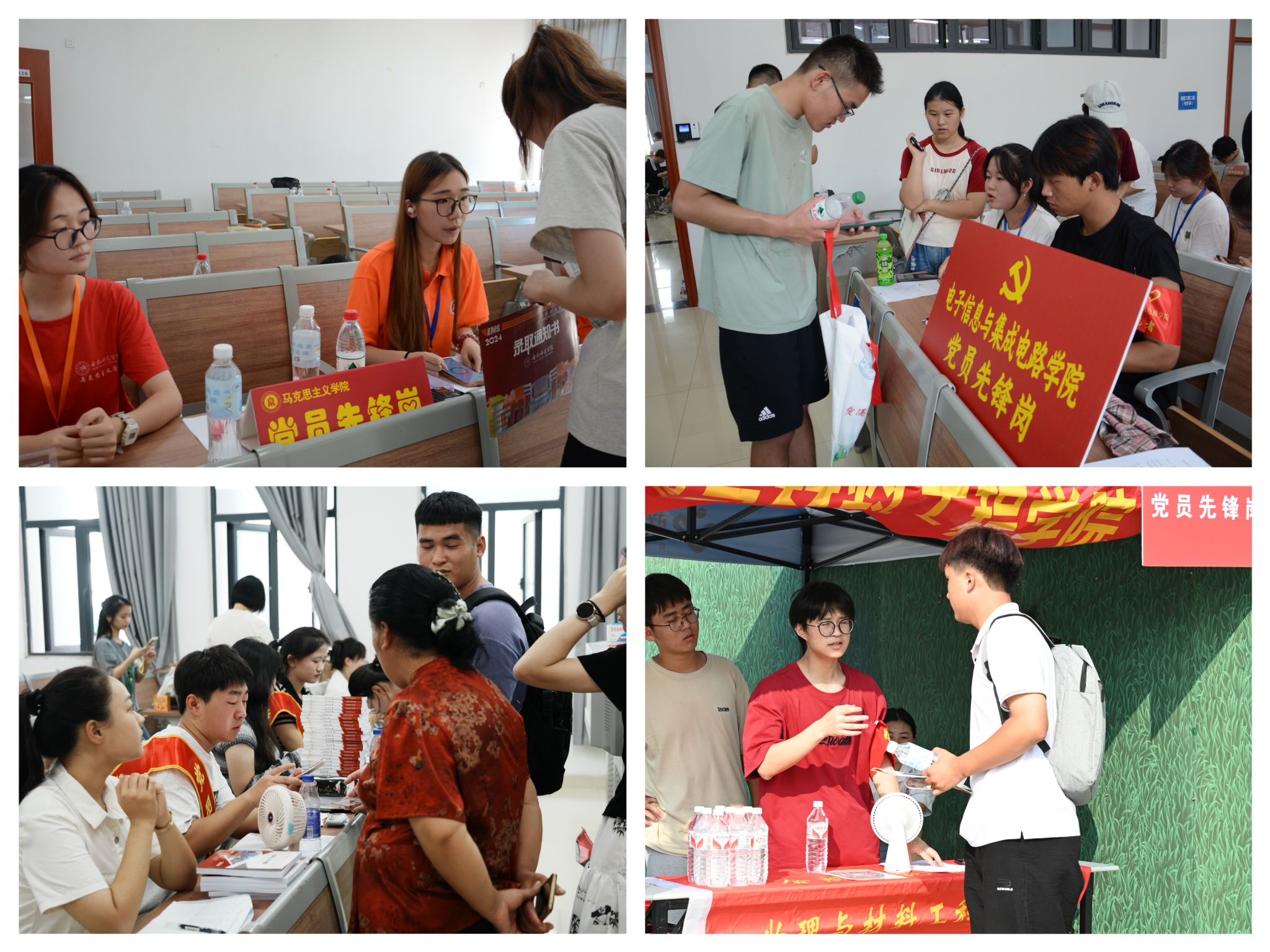 在校园里,随处可见佩戴党员徽章的党员志愿者们,他们或热情引路,或看管行李,或递上饮用水,积极主动地为来校的新生及家长答疑解惑,介绍报到流程、校园环境、专业学习等相关情况,充分展现了党员无私奉献、担当作为的风采。他们用微笑温暖新生,用热情感染新生,用耐心帮助新生,细致周到的服务擦亮了“党员”名片,使广大新生及家长感受到合师大家庭的温暖。