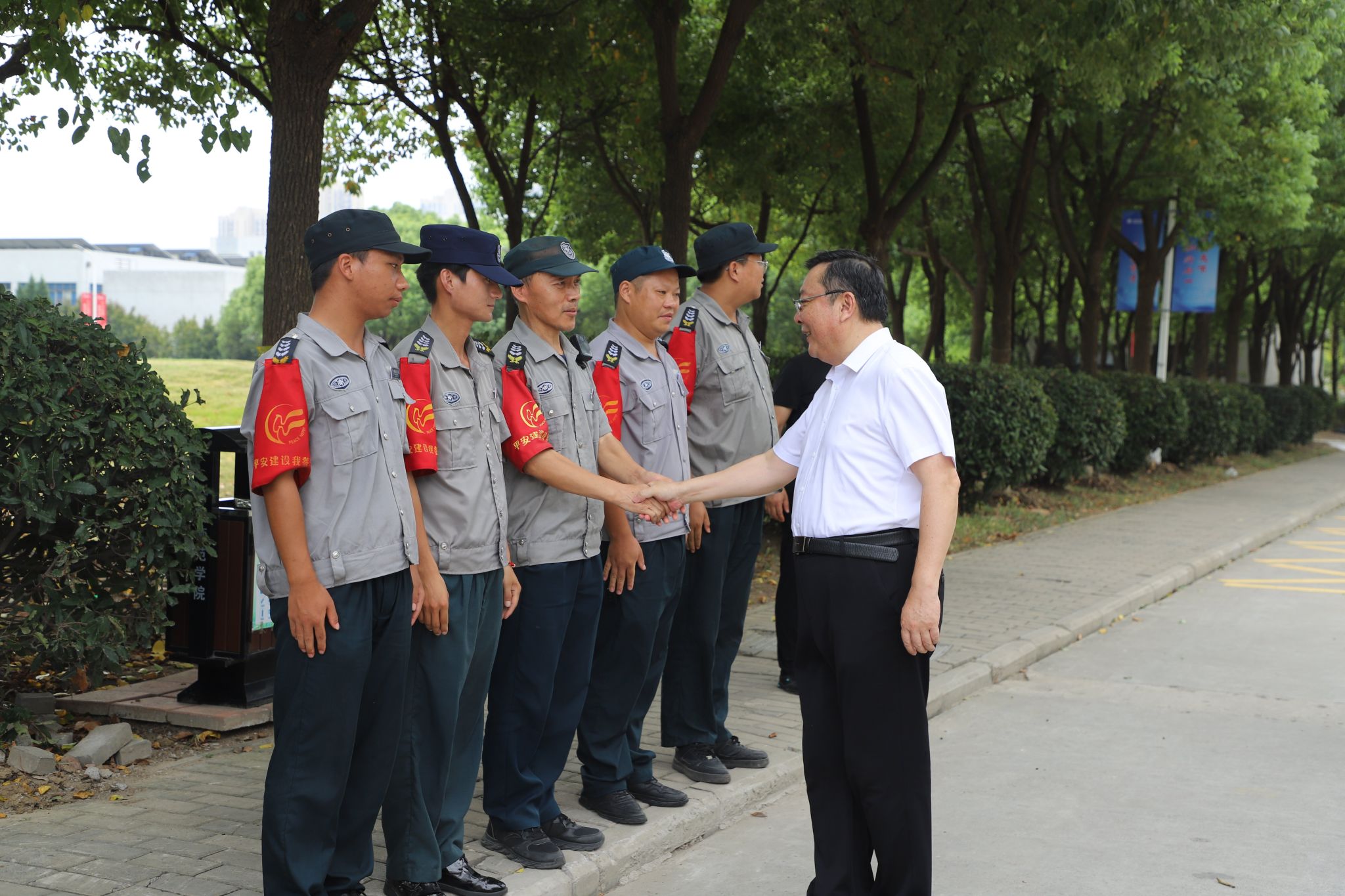 走访慰问中,徐成钢强调,要坚持以人为本,强化服务意识,用心用情做好安全保卫、服务保障、日常管理等工作,积极满足师生学习生活需求,增强师生的归属感幸福感;要坚持底线思维,强化责任担当,严格落实值班值守等制度,持续抓好安全隐患排查与整治,畅通信息渠道,全力守护校园安定和谐,确保师生度过一个欢乐、祥和、平安的中秋假期。