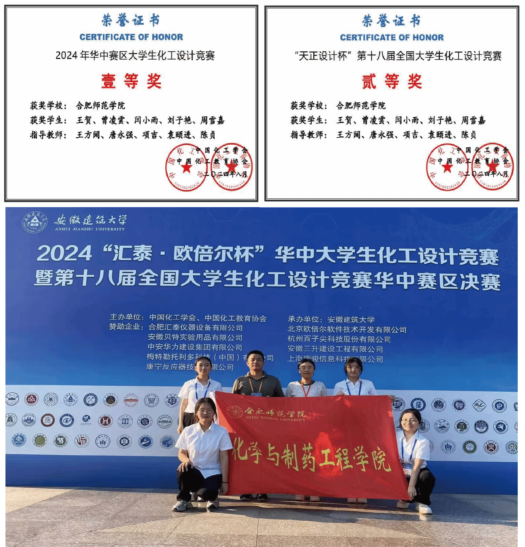 本网讯 近日,化学与制药工程学院传来喜讯,化学工程与工艺专业的三组队伍在“天正设计杯”第十八届全国化工设计大赛中凭借出色的表现分别获得了全国二等奖(华中赛区一等奖)、全国三等奖(华中赛区二等奖)和全国三等奖的优异成绩。这是学院在该比赛中连续第三次获得赛区一等奖,展现了学院在化工专业教学的卓越实力和不懈追求。