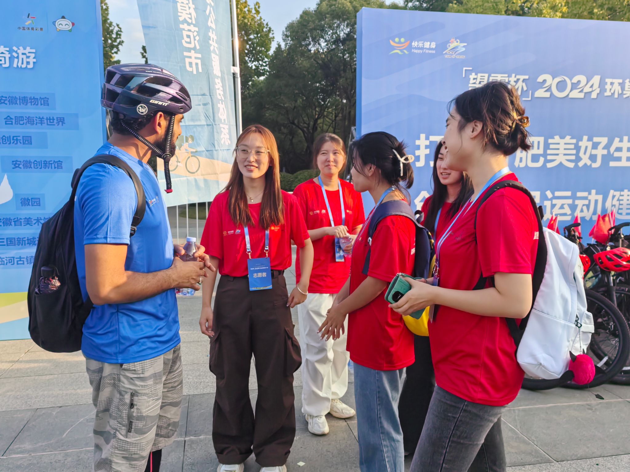 本网讯 9月28日,由合肥市体育局、包河区人民政府共同主办的2024环巢湖骑游大会在渡江战役纪念馆南广场隆重开幕。我院120名青年志愿者参与本次活动志愿服务工作,用饱满的热情和细致周到的服务,为活动的顺利进行提供了有力保障。