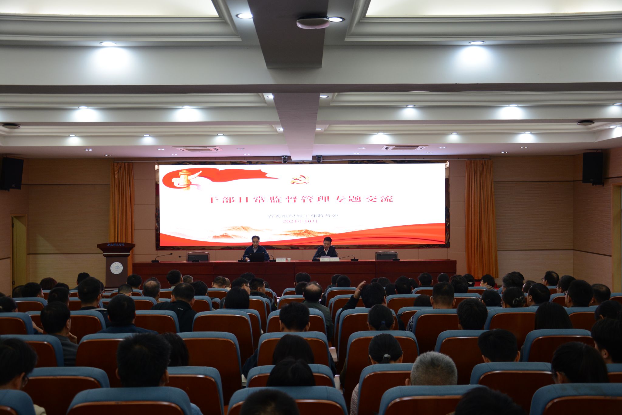 本网讯 为落实巡视整改工作要求,从严从实加强干部管理监督,着力建设高素质干部队伍,10月22日晚,学院在锦绣校区学术报告厅举办第四期“干部行知夜?!?,省委组织部干部监督处副处长梁曌飞应邀围绕干部日常监督管理作专题辅导报告。院领导班子成员、全体处科级干部、党支部书记、党务秘书近300人参加,院党委委员、纪委书记、监察专员徐文林主持会议。