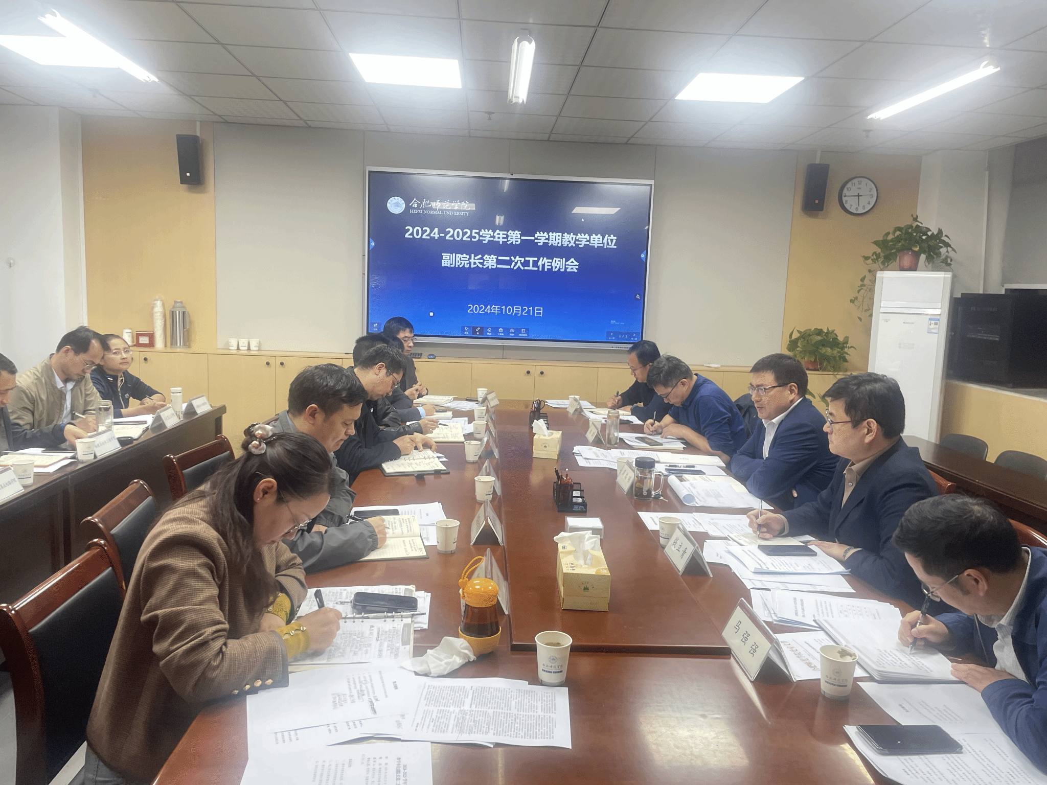 本网讯 10月21日下午,学院在锦绣校区行知楼408会议室召开本学期第二次教学单位副院长工作例会。党委委员、副院长周端明出席会议。各二级学院副院长,教务处负责人及相关工作人员参加会议。会议由教务处处长钱立青主持。