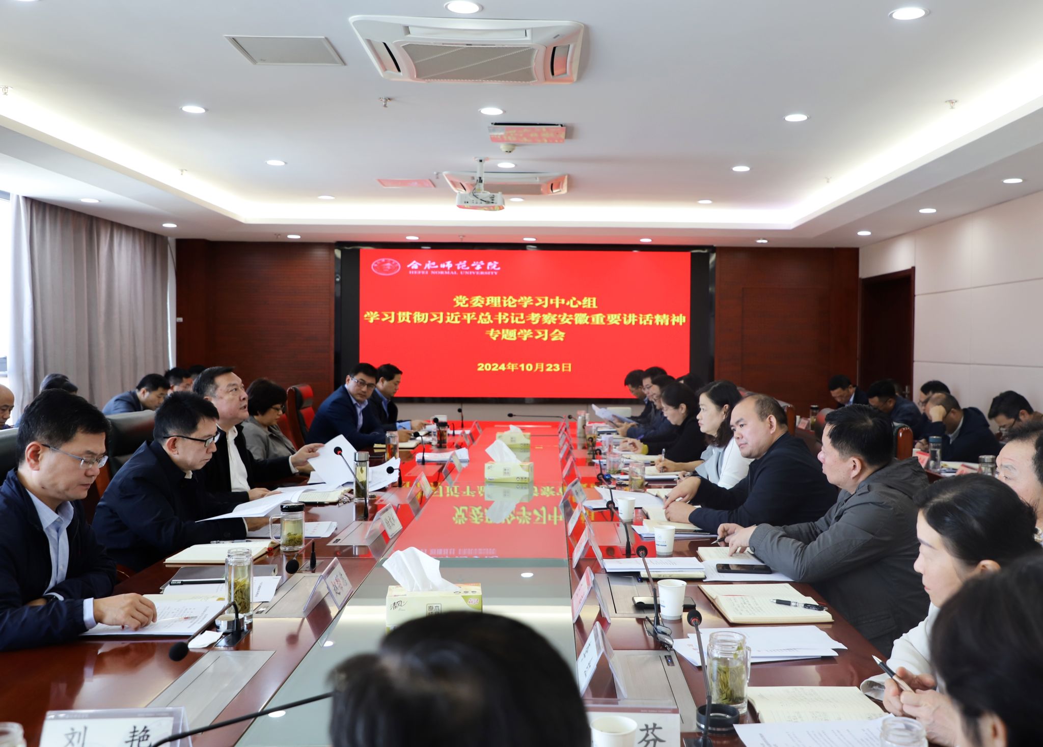 徐成钢指出,要精心组织安排,迅速兴起学习宣传热潮。通过校院两级中心组理论学习会、“三会一课”、主题党日团日活动、教育培训等形式,深入学习研讨、宣传宣讲、研究阐释,将本次学习与学习贯彻习近平总书记2016年、2020年考察安徽重要讲话精神结合起来,与学习贯彻党的二十大精神、党的二十届三中全会精神、全国教育大会精神结合起来,迅速兴起学习宣传贯彻热潮,推动习近平总书记重要讲话精神入脑入心入行。