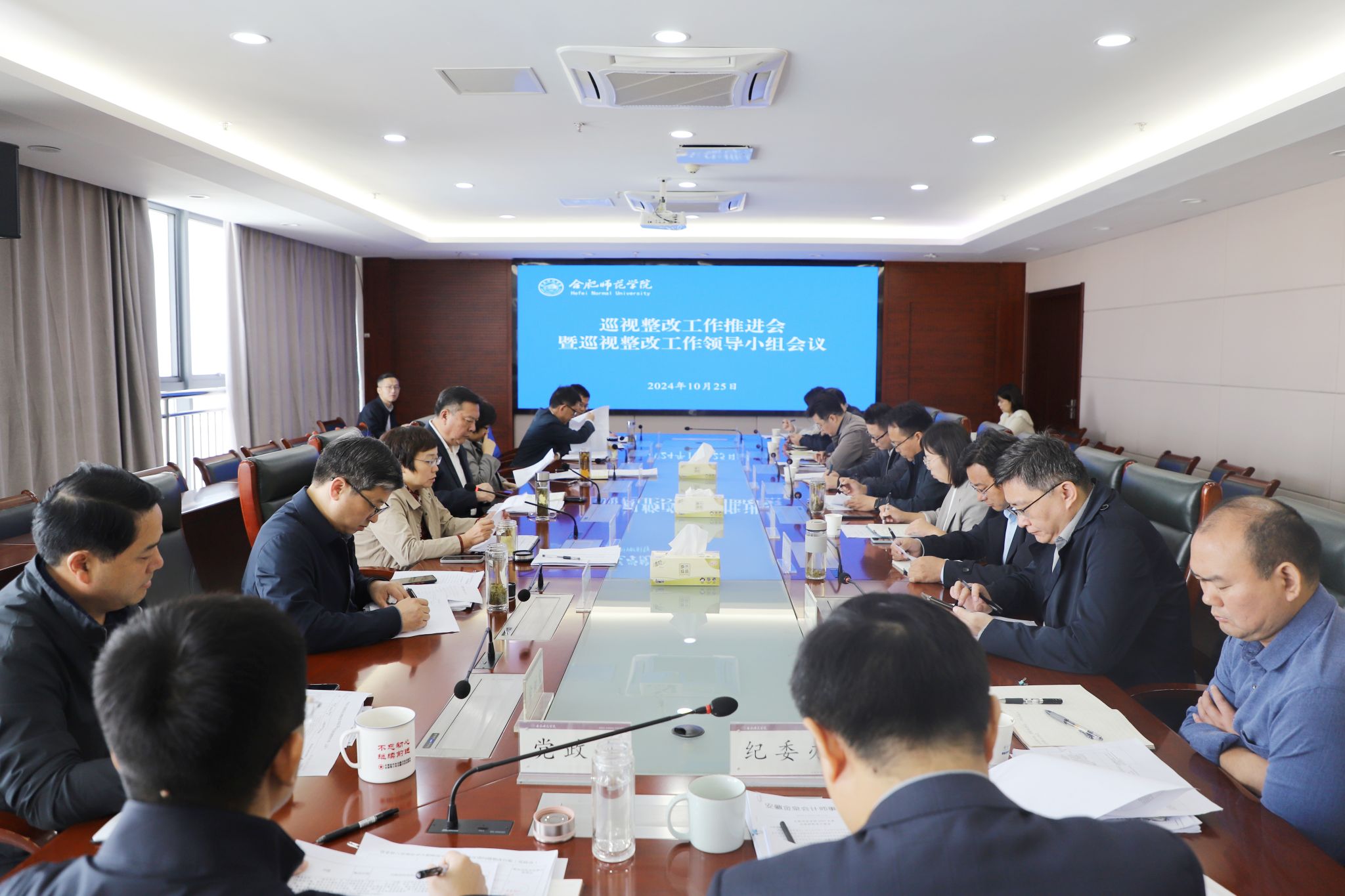 党委书记徐成钢讲话。他就抓好巡视整改工作,提出四点意见。一是强化思想认识。从讲政治、守纪律的高度,抓紧抓牢巡视整改工作,不避难、不遮掩,严格按照“四个维度”整改要求,不折不扣抓好任务落实,以巡视整改的实际行动和效果践行“两个维护”。二是压实工作责任。班子成员要认真履行“一岗双责”,加强工作指导、调度和推动,既要挂帅、也要出征,积极协调解决疑难问题;各牵头单位部门要切实把责任扛起来,把责任压实到人、到岗、到位。三是把握工作进度。认真落实“周报告、旬调度、月推进”等机制,按照整改时限,倒排整改工期,确保问题整改如期落地。四是确保整改成效。将巡视整改工作与学习贯彻党的二十届三中全会、全国教育大会精神,特别是学习宣传贯彻习近平总书记考察安徽重要讲话精神结合起来,与推进学院年度重点工作落实结合起来,一体谋划、系统推进、综合施策,以扎实的整改成效推动学院党建事业高质量发展。