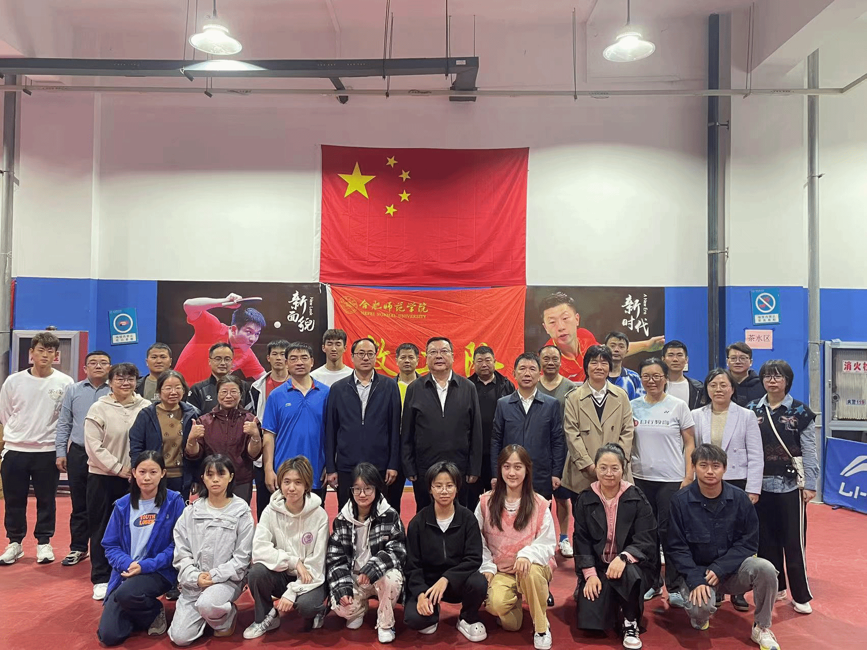 在颁奖仪式开始前,徐成钢、徐文林亲切看望了全体参赛教职工和裁判员,对在比赛中获得佳绩的教职工表示祝贺。徐成钢指出,老师们能够在繁忙的教学科研工作之余,克服各种困难积极备赛、认真参赛,顺利完成参赛项目,充分展现出老师们拼搏进取的精神风貌。同时,徐成钢也勉励广大师生要认真学习贯彻习近平总书记考察安徽重要讲话精神,不断探索教育教学、科技创新与服务地方经济社会发展深度融合的有效途径,助力推进学院地方应用型高水平大学建设迈上新台阶。(乒乓球协会)
