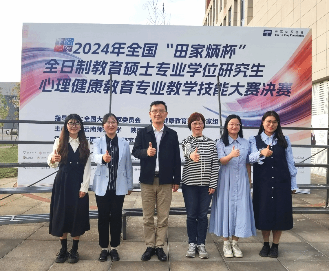 本网讯 10月25日至27日,2024年全国“田家炳杯”全日制教育硕士专业学位研究生心理健康教育专业教学技能大赛(决赛)在云南师范大学举行。经现场抽签分组抽题、上课说课答辩等环节,由2023级心理健康教育专业3名硕士研究生组成的参赛队伍取得佳绩,其中姚沛庭、陈李玲两位同学分别获得三等奖、程雅莹同学获优秀教学设计奖。