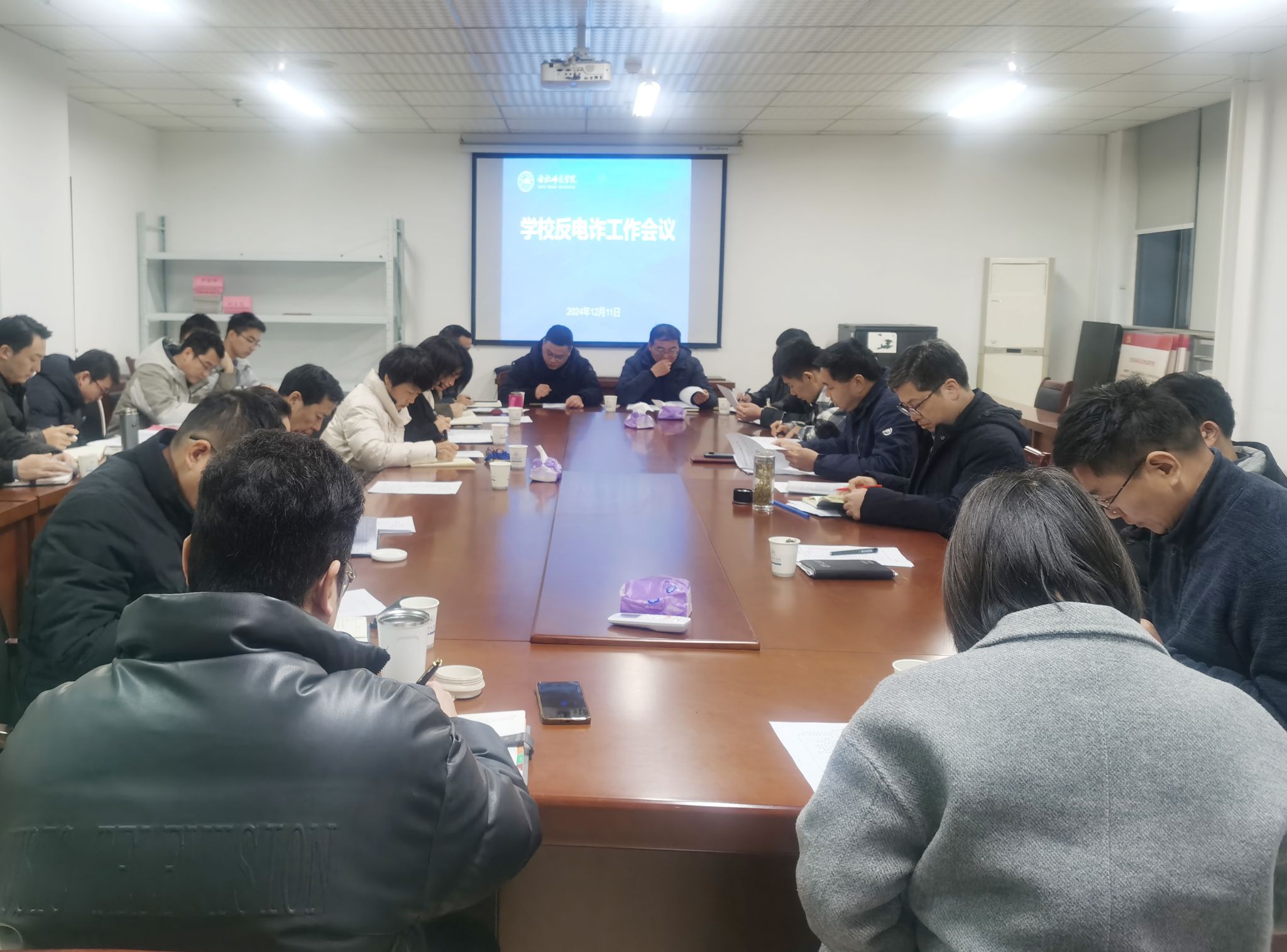 本网讯 为深入贯彻落实习近平总书记关于打击治理电信网络诈骗犯罪工作的重要指示精神和省委、市委部署要求,进一步推进巡视整改工作,加强“无诈学校”建设,维护学生财产安全,消除安全隐患,12月11日上午,学院在行知楼308会议室召开反电信网络诈骗工作推进会,部署反电诈相关工作。党委委员、副院长华银峰出席会议并讲话。宣传部、学生工作处、保卫处等相关部门负责人和各二级学院副书记、辅导员代表参加会议。会议由保卫处负责人主持。