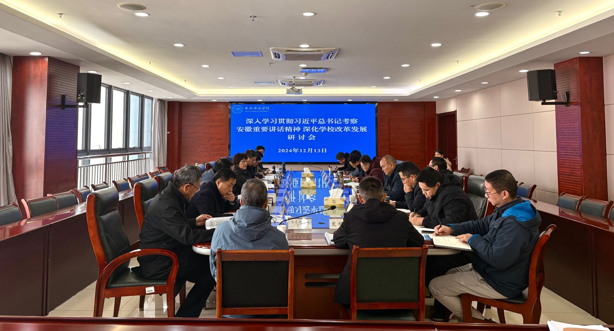 本网讯 为进一步解放思想、凝聚改革共识,12月13日上午,学院在锦绣校区行知楼2008会议室,召开深入学习贯彻习近平总书记考察安徽重要讲话精神深化改革发展研讨会。党委副书记、院长方东玲主持会议,党委委员、副院长华银峰,党委委员、副院长周端明出席会议。党政办、纪委办、组织部、宣传部、工会、团委、人事处、教务处、科研处、发展规划处、研究生处、学生工作处、国际交流与合作处、财务处、后勤处、保卫处、滨湖办、信息化管理处、马克思主义学院等单位主要负责人参加会议。