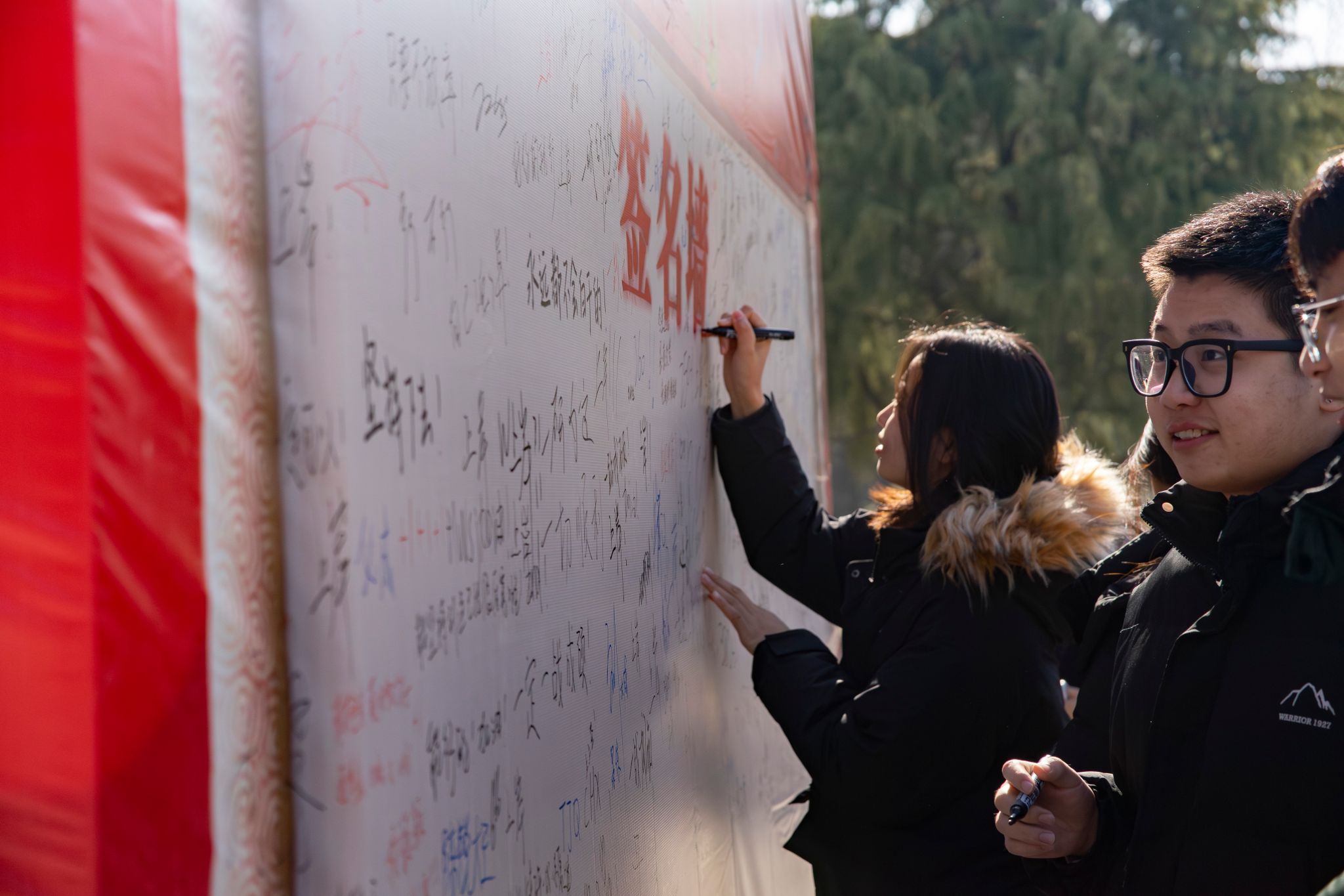 本网讯 为鼓舞学子考研士气,进一步舒缓考前压力,近日,学院在锦绣校区荷园广场开展考研护航计划系列活动,通过在签名墙留言打卡、发放统一定制助研包、抽取食堂代金券等,将学院的关心关爱传递给学子们,受到考研学生的一致好评。