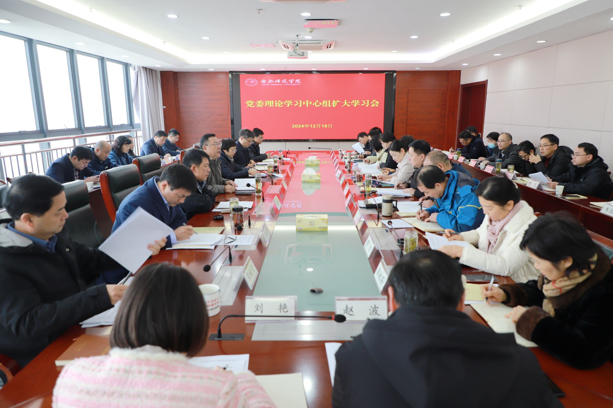 本网讯 12月18日上午,学院在行知楼2008会议室举行党委理论学习中心组扩大学习会。党委书记徐成钢主持会议并讲话。党委理论学习中心组成员,各院系级党委(党总支、直属党支部)书记,各学院院长,各部门主要负责人参加学习。