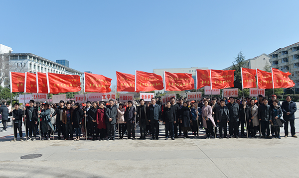 本网讯3月5日中午,学校在锦绣校区生活广场隆重举行2018年学雷锋活动月暨“爱心三月行”志愿服务活动启动仪式。校党委书记徐成钢、党委副书记吴昕春,合肥市包河区志愿服务联合会、高铁南站志愿服务联合会会长裴惠丽及学校相关部门负责人,各学院党总支书记、副书记,分团委书记,各学院志愿服务团队骨干,学生会学生干部代表,青年志愿者协会代表等共计500余人参加启动仪式。