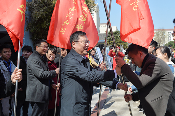 启动仪式上,全体志愿者代表进行了宣誓,与会领导们为各学院学雷锋志愿服务团队授旗。