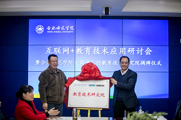 本网讯3月20日下午,为贯彻落实教育信息化试点省的建设工作,推进基础教育信息技术与教育教学的融合创新,我校在锦绣校区举行“互联网+教育技术应用研讨会”暨合肥师范学院·国通亿创教育技术研究院揭牌仪式。副校长曹卓良,合肥市教育局调研员姜昌根、总督学吴庆防,安徽国通亿创科技公司董事长柳世祥,合肥工业大学等高校专家以及来自合肥、淮南、马鞍山等市高中、初中和小学的校长、教师代表参加会议。基础教育改革与发展协同创新中心执行主任钱立青主持会议。