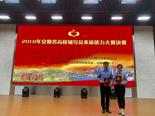 本次决赛共有来自皖南、合肥、皖北三个赛区25所高校的30名选手同台竞技。经过激烈角逐,我校刘铭传学院辅导员宗彪老师、艺术与传媒学院辅导员戴玉佩老师荣获大赛三等奖。