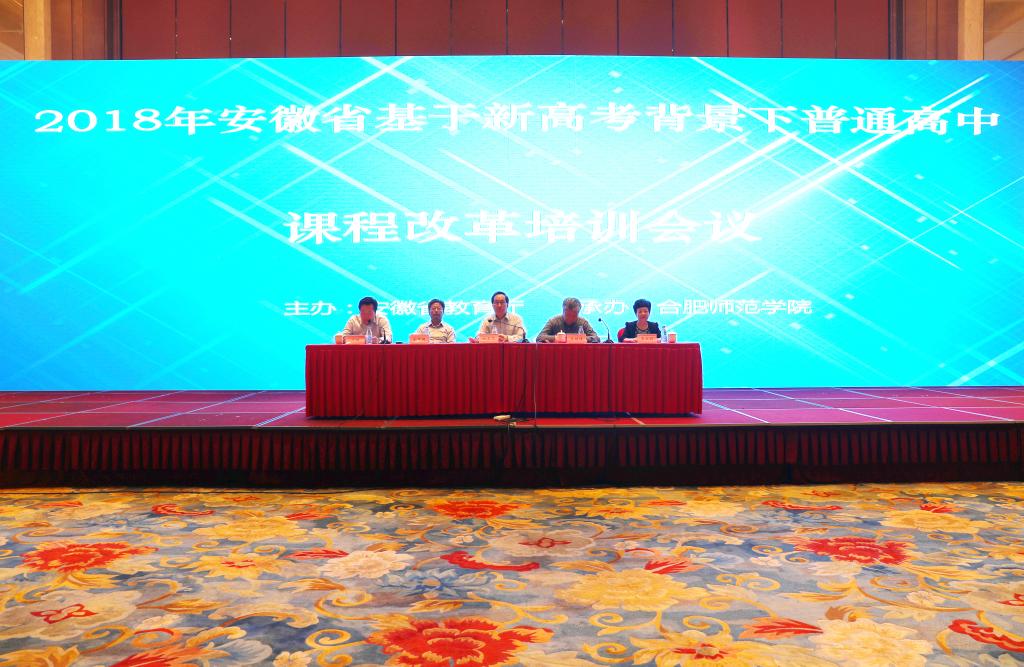 本网讯5月22日上午,2018年基于新高考背景下普通高中课程改革培训在我校开班。我校副校长姚本先、安徽省教育科学院院长李灿莉、安徽省教育厅师资处副处长卢鹏和来自全省各地的市、县(区)教育局局长、分管局长、基教科科长、教研室主任,省示范高中校长、分管教学副校长1000余人参加开班仪式。开班仪式由卢鹏主持。