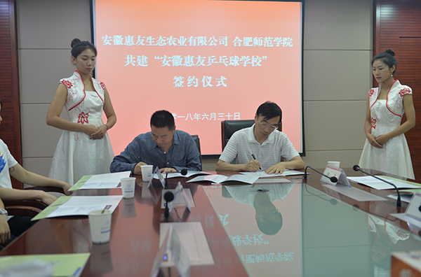 孙道胜代表学院与安徽省田径游泳运动中心、安徽省惠友生态农业有限公司分别签订了关于共建安徽省青少年田径队和安徽惠友乒乓球学校的合作协议。