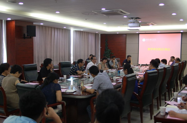 本网讯7月10日下午,学院在行知楼2008会议室召开教学单位院长例会。副院长姚本先出席会议,相关二级学院院长、副院长、校督导团常务副团长、以及教务处全体工作人员参加会议。会议由教务处处长胡昂主持。