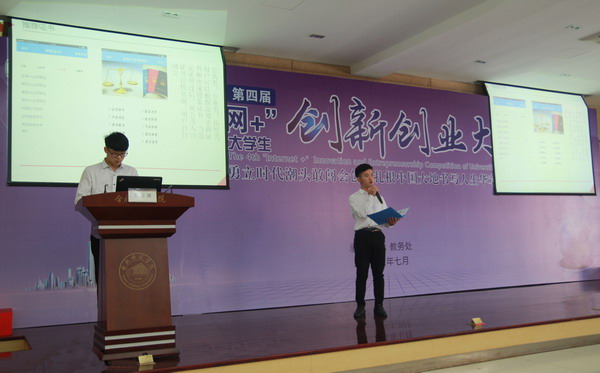 本网讯7月12日,学院第四届“互联网+”大学生创新创业大赛决赛在锦绣校区学术报告厅举行。本次大赛邀请了来自合肥工业大学、安徽大学、合肥学院等高校专家担任比赛评委。