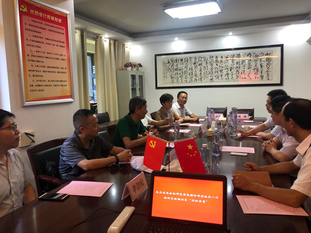 本网讯7月12日下午,副院长谢阳群在后勤处、音乐学院负责人陪同下,前往合肥市笔架山街道天鹅湖社区“行知学堂”看望正在公益教学的“小先生”。笔架山街道党工委副书记胡永生、办事处副主任邢磊和天鹅湖社居委书记洪军等热情接待了谢阳群一行。