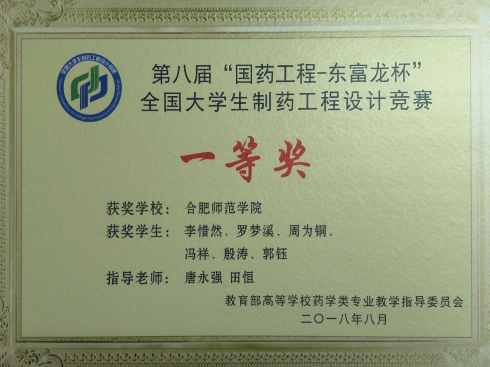 本届赛事的大丰收,充分展示了我院制药工程专业在培养学生工程设计能力和应用能力等方面取得的优秀成果,提高了我院制药工程专业在国内的影响力。(化学与化学工程学院)