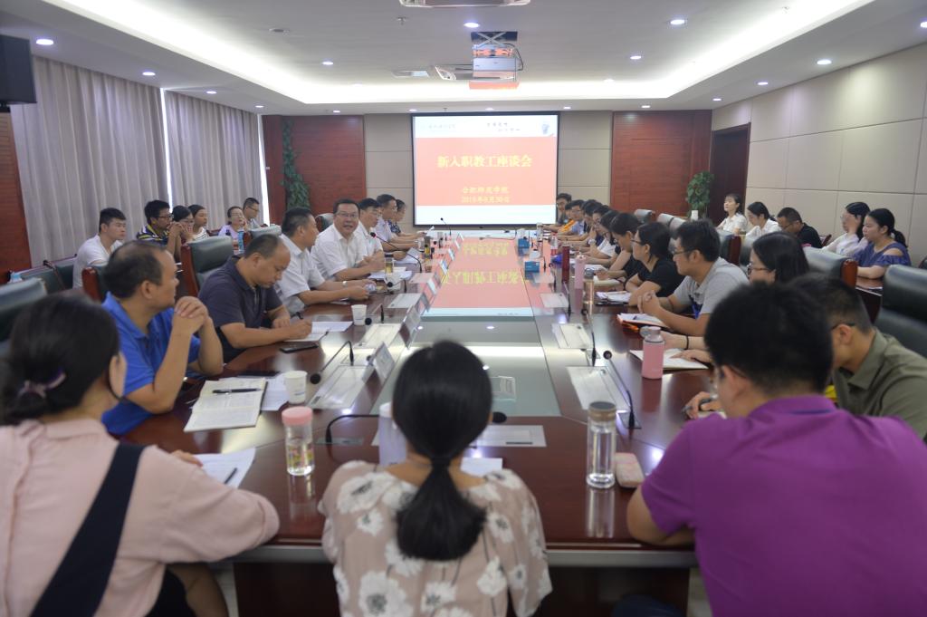 本网讯8月30日上午,2018年新进教职工座谈会在锦绣校区行知楼召开,党委书记徐成钢,党委副书记、院长孙道胜,党委副书记、副院长李进华,人事处、教务处、科研处、学工部等部门负责同志及2018年新进教职工参加会议,李进华主持会议。