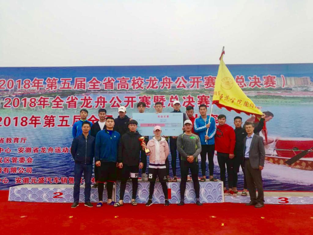 本网讯由安徽省教育厅和安徽省体育局联合主办的2018年第五届安徽省高校龙舟系列赛于9月26日至10月14日分别在黄山、颍上、合肥举行。本年度比赛首次采用“分站赛+总决赛”形式,设分站赛奖与积分总冠军奖。赛事吸引了包括中国科学技术大学、安徽师范大学、安庆师范大学、合肥师范学院等12所高校参与。我院龙舟队继续发扬团结拼搏、勇于争先的精神,三站比赛均获得一等奖,并斩获年度总冠军的桂冠。