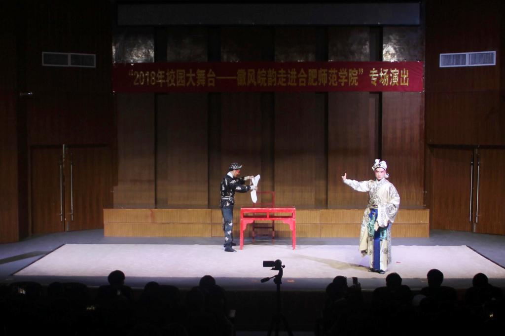 本网讯10月30日下午,省委宣传部、省文化厅、省教育厅、省财政厅共同主办的“校园大舞台--徽风皖韵进高校”活动在我院锦绣校区音乐厅举行,来自安徽省徽京剧院的艺术家们为现场近400名师生带来一场精彩的文化盛宴。