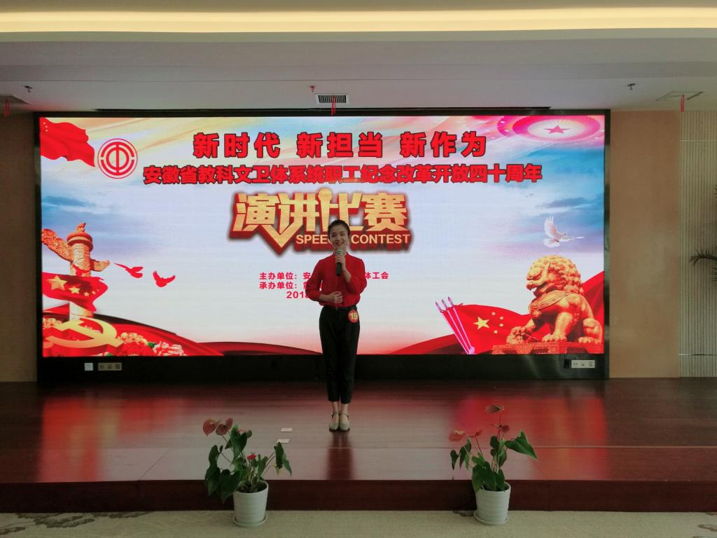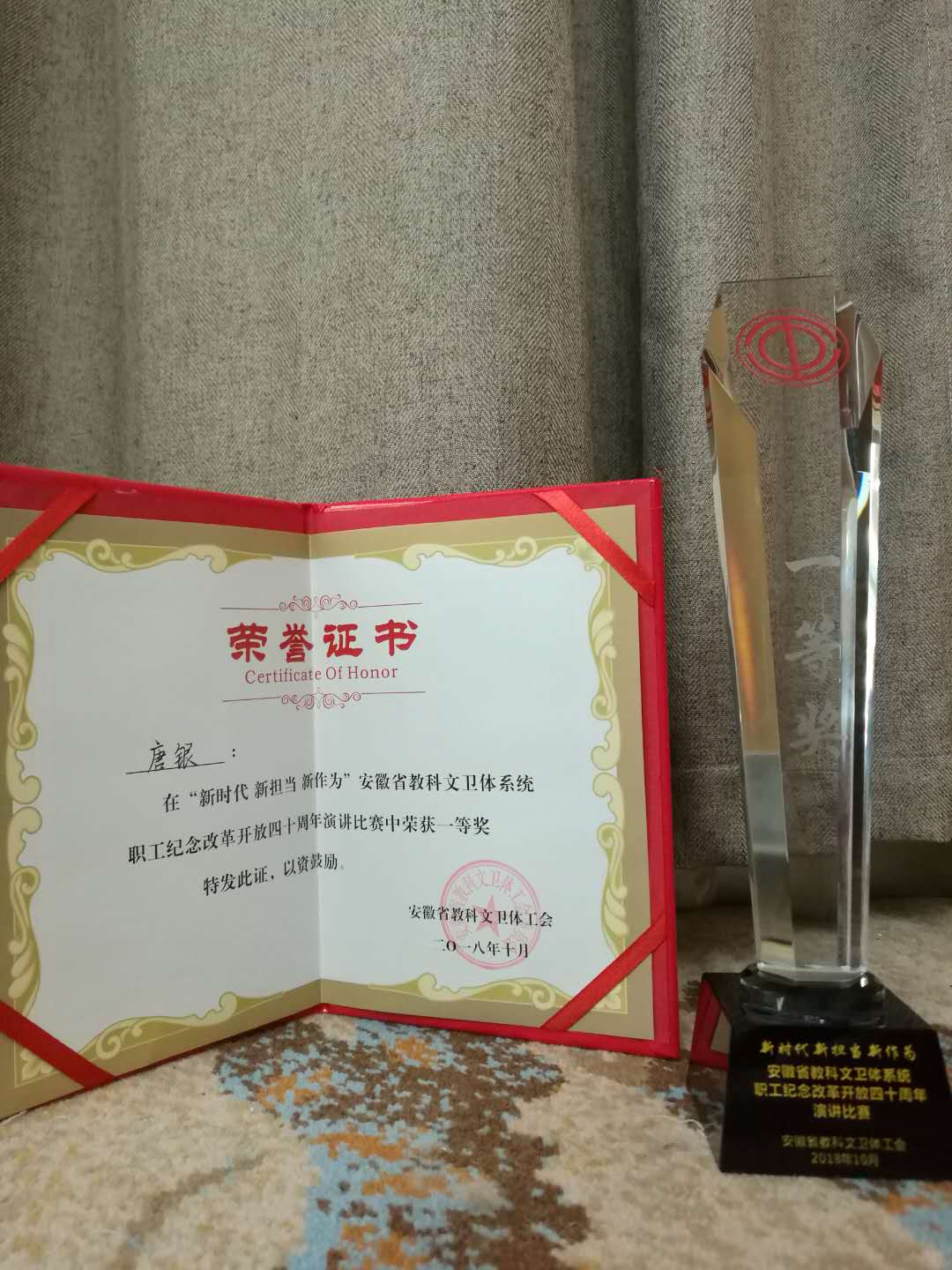 本网讯由安徽省教科文卫体工会主办的“庆祝改革开放四十周年”主题演讲比赛于10月29日至10月31日在黄山举行。我院教师教育学院唐银老师获得一等奖,我院工会获得优秀组织奖。