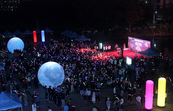 本网讯11月4日晚,学院“庆祝改革开放40周年”第四届校园荧光跑活动在锦绣校区生活广场举行。院团委、各二级学院团委负责人,安徽大学、合肥学院等兄弟院校相关社团负责同学来到活动现场,与我院1500余名青年大学生一起参加活动。