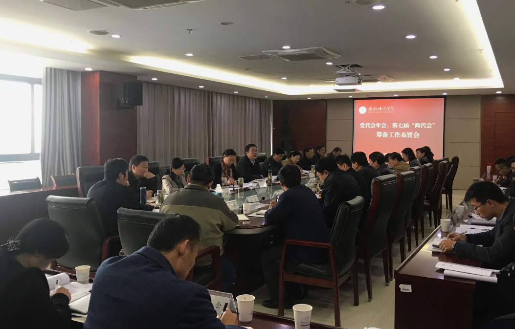 徐成钢在讲话中指出,党代会年会及“两代会”是学院深入学习贯彻习近平新时代中国特色社会主义思想和党的十九大精神,贯彻落实全国教育大会和新时代全国高等学校本科教育工作会议精神,加快推进地方应用型高水平大学建设的关键时期召开的两个重要会议。就做好会议筹备工作,他提出具体要求:一是认识重要意义,提高政治站位。要充分认识到筹备召开这两个会议,既是广大党员和师生员工政治生活中的一件大事,也是各级党组织的一项重要政治任务,对进一步凝聚全院上下把握新形势、明确新任务、共促新发展具有重要的意义。二是加强组织领导,压实工作责任。要按计划扎实做好会议筹备组织的各个阶段、各个环节工作,做到思想上高度重视、工作上认真对待、行动上积极主动。三是突出工作重点,抓好全面落实。要重点抓好代表选举、委员推荐、提案征集、氛围营造等工作,使筹备召开会议的过程,成为统一思想、凝聚共识、振奋精神、汇聚合力的过程。四是严格工作程序,严肃工作纪律。要按照学院党委统一部署,严守纪律,严格按照规定和程序办事,充分发扬民主,尊重党员和师生民主权利,确保党代会年会及“两代会”顺利召开、圆满成功。