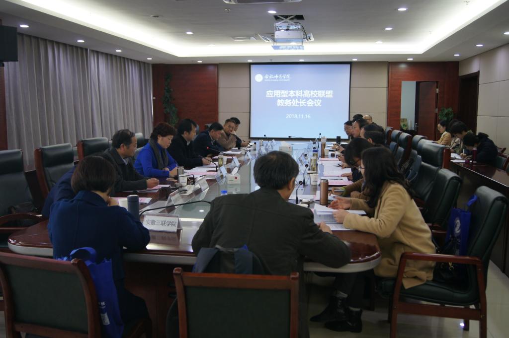 11月16日下午,安徽省应用型本科高校联盟教务处长工作会议在我院行知楼2008会议室召开,省教育厅高教处副处长梁祥君出席会议,联盟高校各教务处处长、联盟秘书处相关人员参加会议,会议由我院教务处处长胡昂主持。
