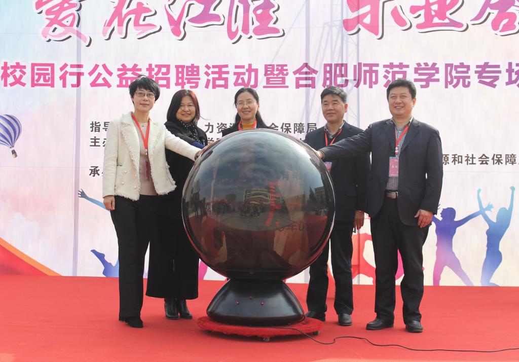 本网讯为贯彻落实党的十九大精神,大力实施就业创业促进工程,进一步推动我院2019届毕业生充分就业,为毕业生求职和用人单位招聘人才提供高效、便捷、精准的服务。3月15日上午,由省人社厅、省大中专毕业生就业指导中心指导,合肥师范学院和合肥市人社局共同主办,合肥市公共就业人才服务管理中心、包河区人社局、安徽省人力资源经理人协会和安徽徽商人力资源管理有限公司承办的2019“爱在江淮,乐业合肥”校园行公益招聘活动暨合肥师范学院2019届毕业生就业春季招聘会在锦绣校区生活广场隆重举行。院党委书记徐成钢,院党委副书记、院长孙道胜,院党委副书记吴昕春,省人力资源和社会保障厅就业失业处调研员张清,省大中专毕业生就业指导中心发展培训部主任王素苗,合肥市人力资源和社会保障局副局长何冰,合肥市公共就业人才服务管理中心副主任李方成等出席启动仪式,用人单位代表,学院相关职能部门、各二级学院党政负责同志、负责就业工作的辅导员和毕业生等共计约2000人参加启动仪式。仪式由省人力资源经理人协会会长匡龙云主持。
